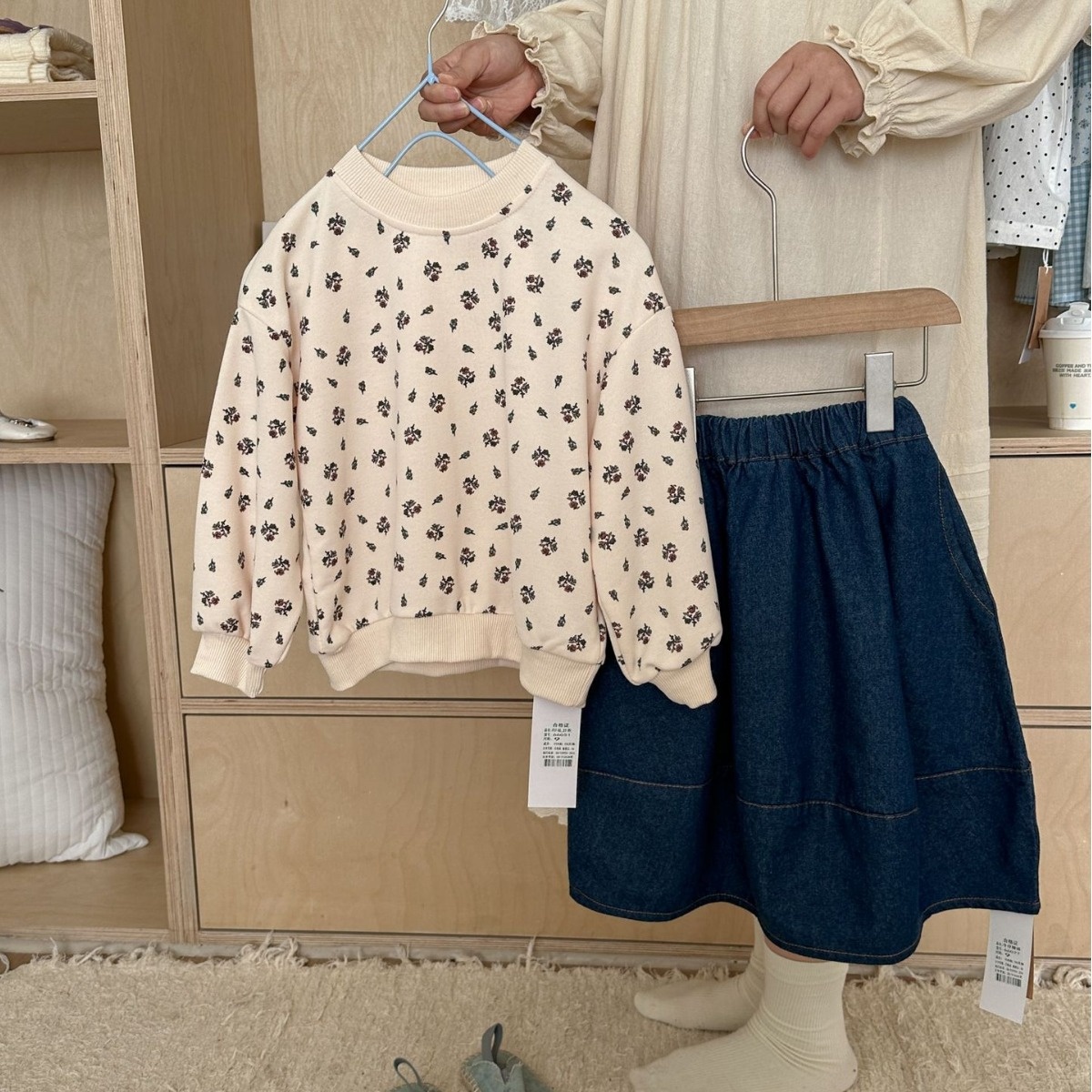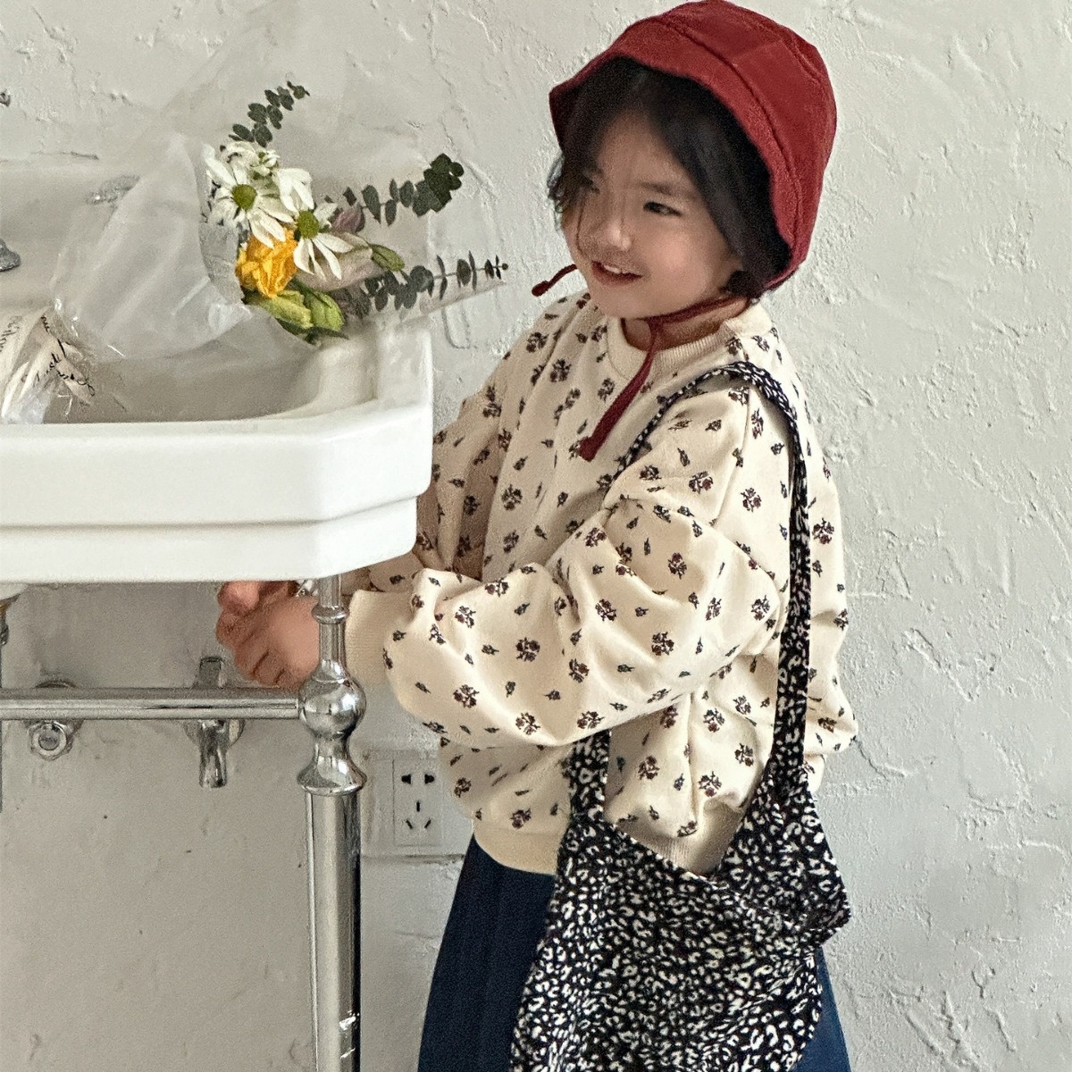Children's Sweatshirt Spring Korean Version Girls Retro Printed Sweatshirt Children's Raglan Sleeve Pullover Round Neck Top