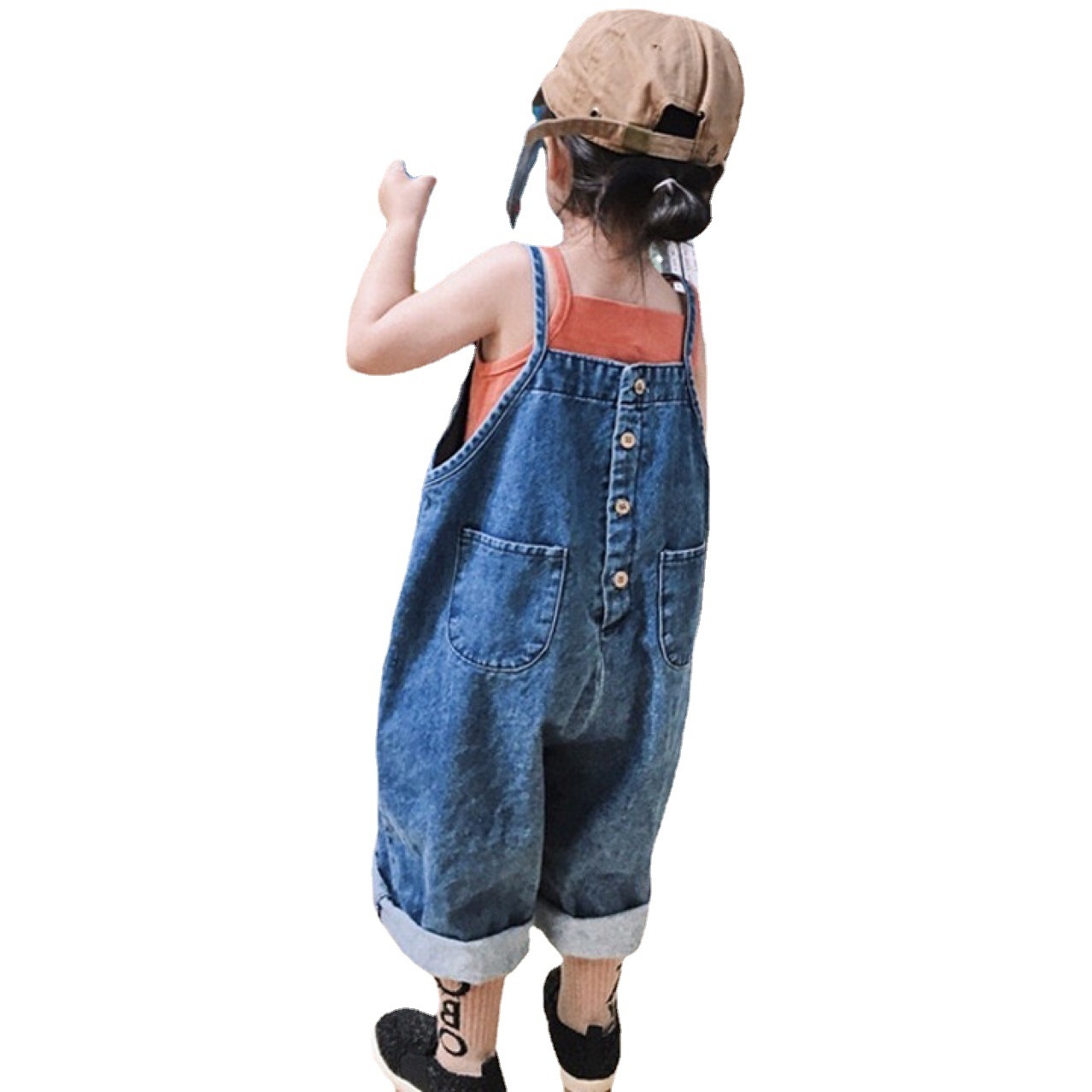 Spring,Summer And Autumn Korean Girls Overalls Fashion Children's Overalls Double-sided Personality Jeans Wide-leg Pants