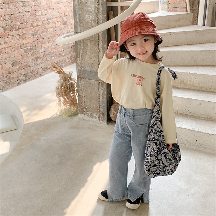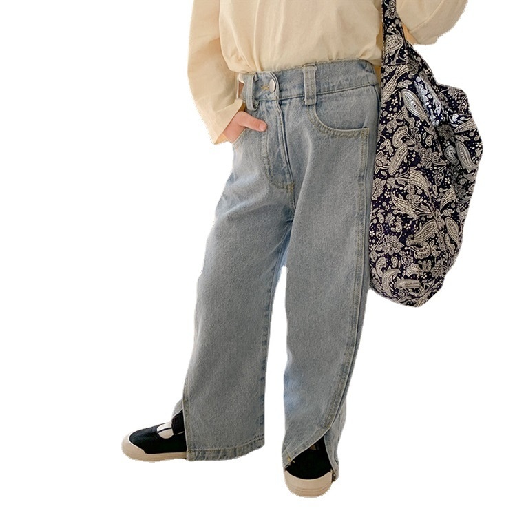Girls'Fashionable Jeans Spring And Autumn Wear Korean Wide-leg Pants For Small And Medium-sized Children,Casual Trousers For Babies