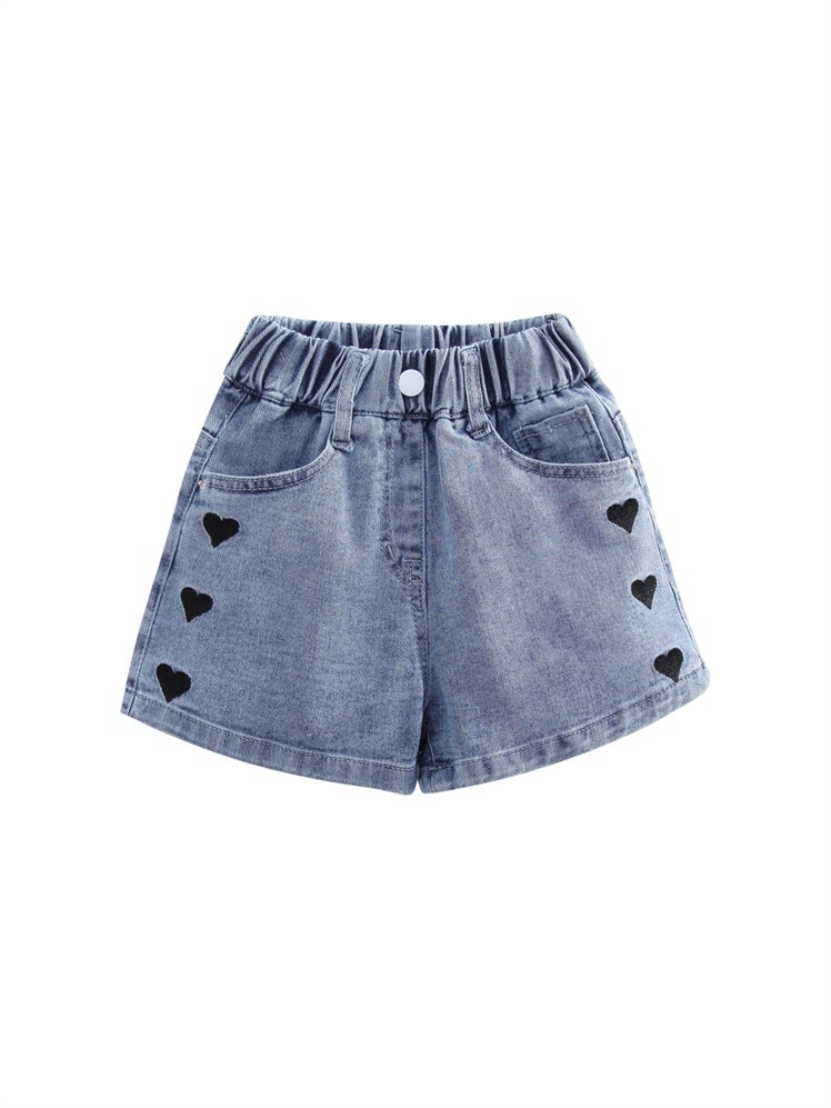 Girls Shorts Summer Clothes Children's Korean Style Stylish Love Jeans Little Girls Fashionable Hot Pants