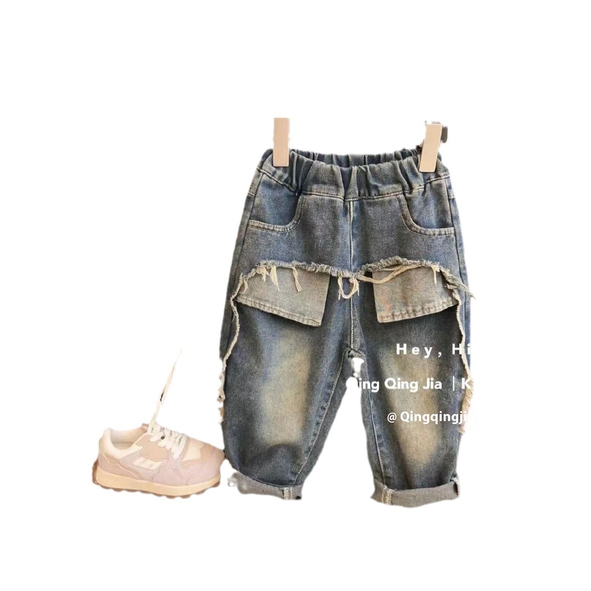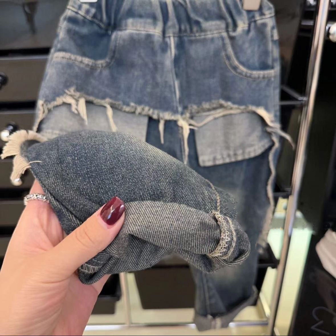 Children's Jeans Pants Straight Casual Loose Ripped Washed Children's Jeans Pants Straight Casual Loose