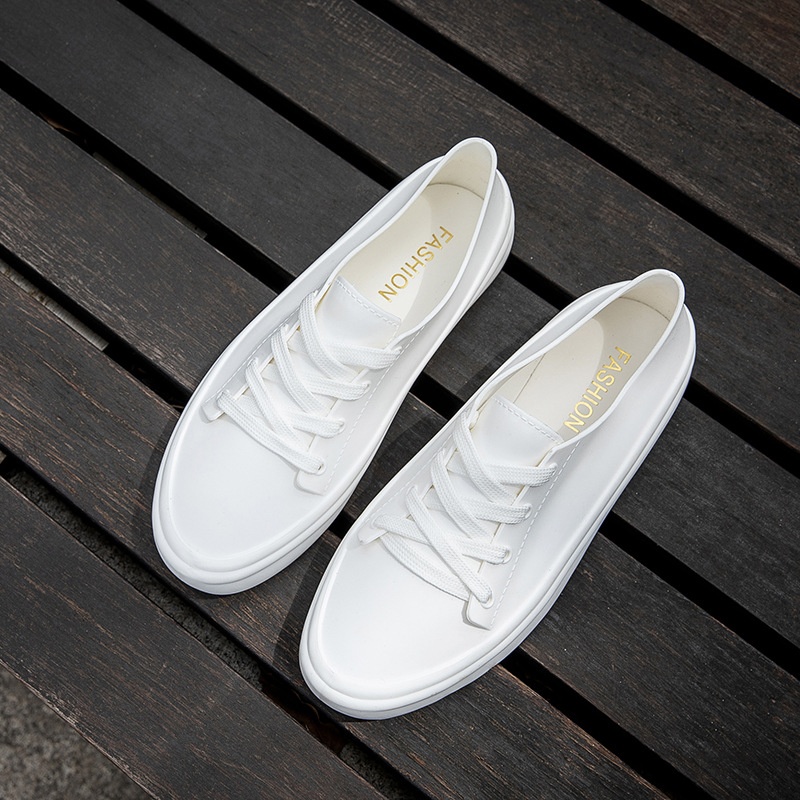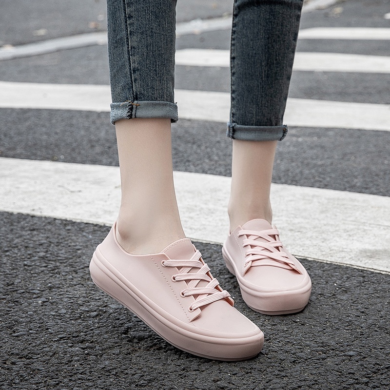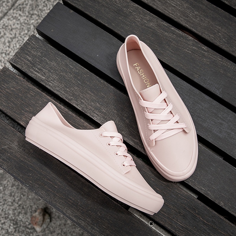 Pvc Simple Solid Color Women's Shallow Mouth Rain Boots Fashionable Four Seasons Shoelace Rain Boots Student Rain Boots Female