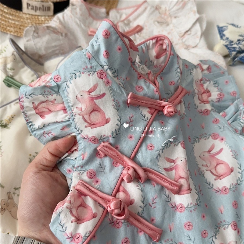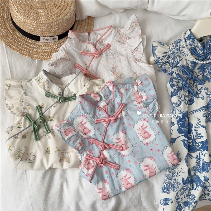 Chinese Dress For Girls Summer Style Children's Sweet And Fresh Improved National Style Button Cheongsam Skirt