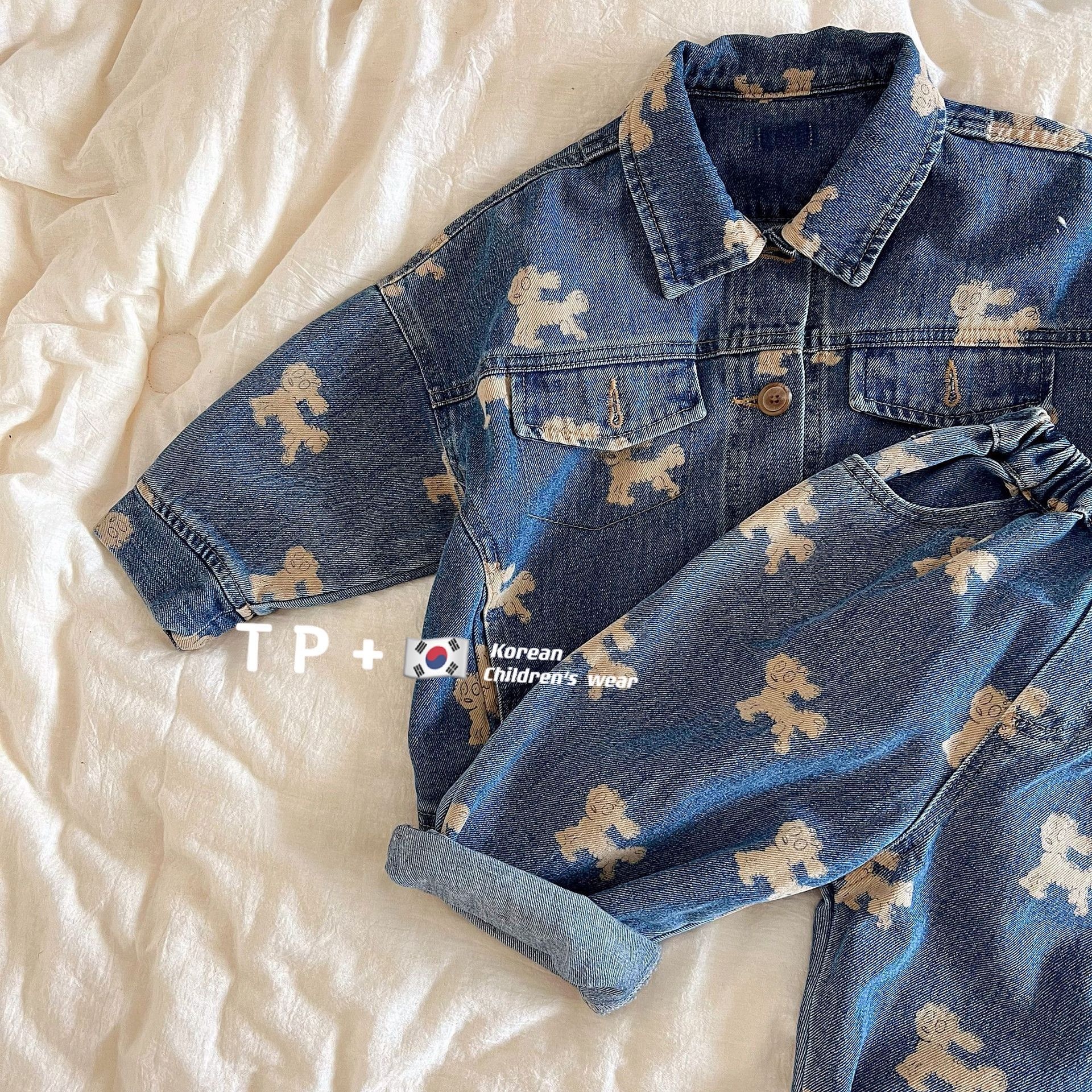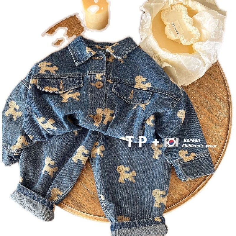Flathead Children's Jacket Spring Korean Version Boys And Girls Cartoon Print Denim Baby Cardigan