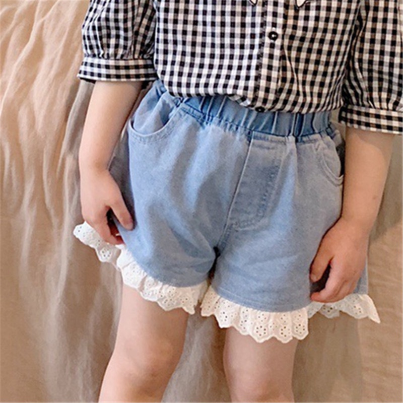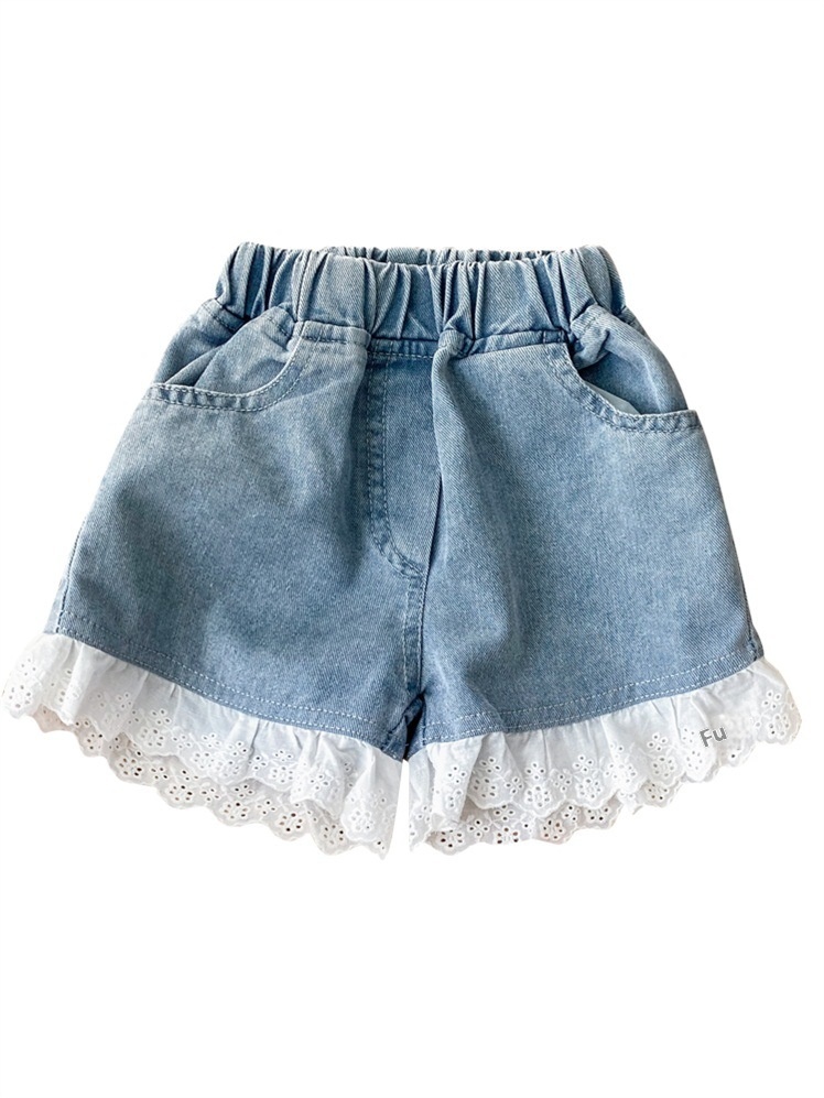 Korean Version Children's Sweet And Comfortable Soft Denim Shorts Lace Shorts