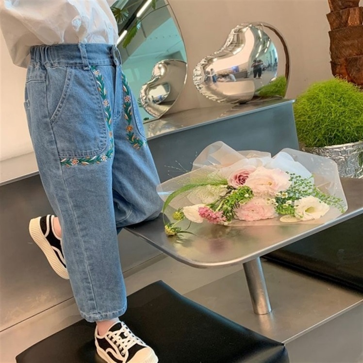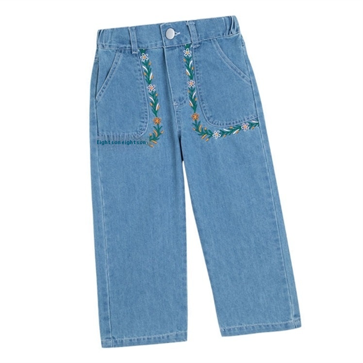 Girls Jeans Spring Style Girls Straight Embroidered Jeans Children's Fashionable Pants Baby Trousers