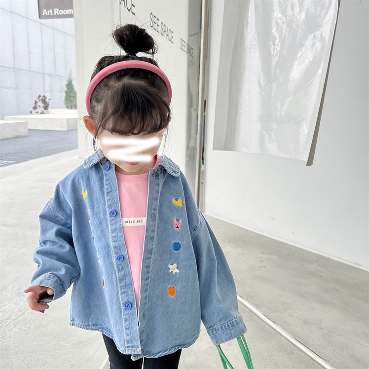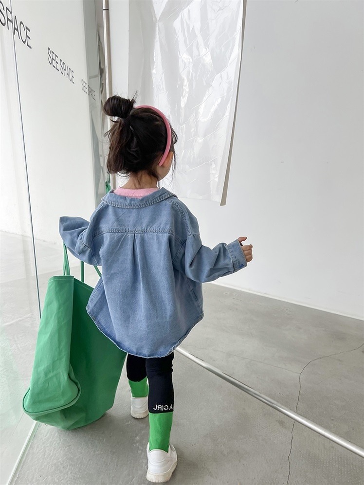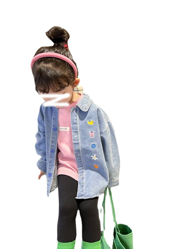 Girls Denim Shirts Spring And Autumn Children's Fashionable Casual Jack Baby Korean Style Tops Children's Clothing