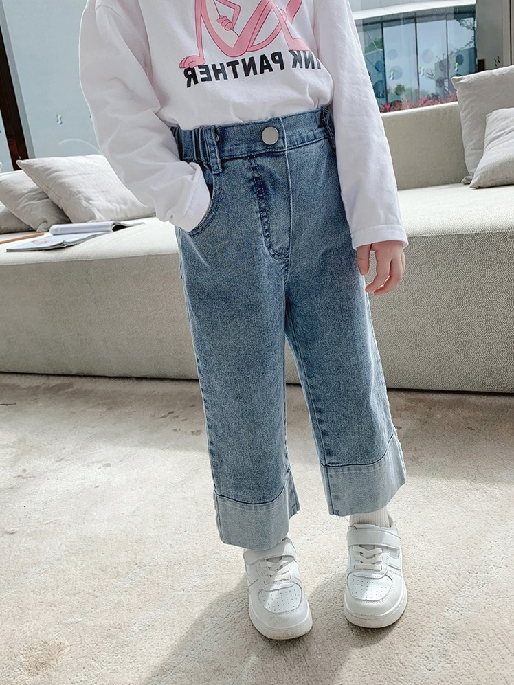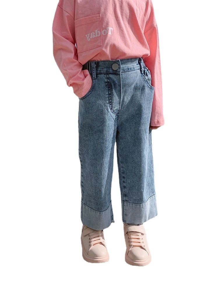 Girls'Fashionable Jeans Spring And Autumn Korean Version Children's Internet Celebrity Wide-leg Pants Baby Casual Long Pants