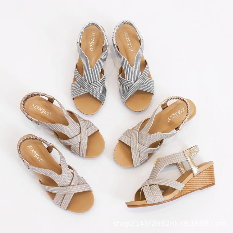 Bohemian Ethnic Style Open Toe Summer Comfortable Holiday Sandals Travel Wedge Heel Roman Sandals Female1418-718