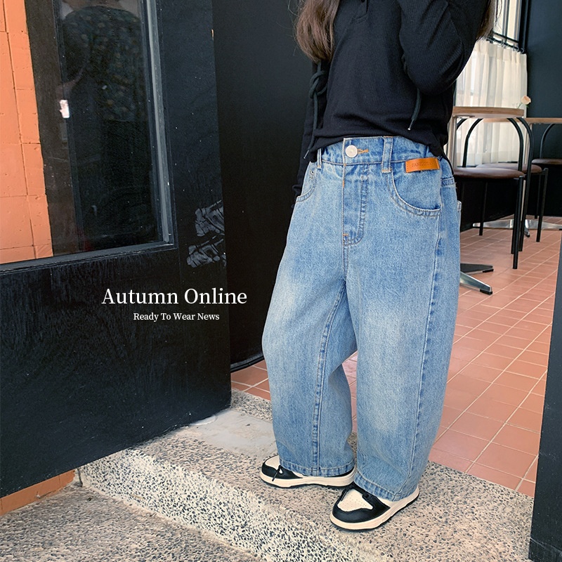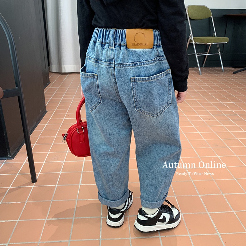 Amo Beibei Children's Pants Korean Version Spring Children's Fashion Leather Label Casual Loose Dad Jeans