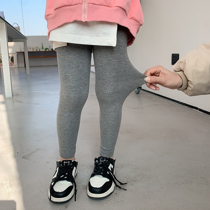 Amo Beibei Children's Pants Children's Solid Color Elastic Pit Leggings Girls Baby Spring And Autumn Style Slim Feet Children's Pants