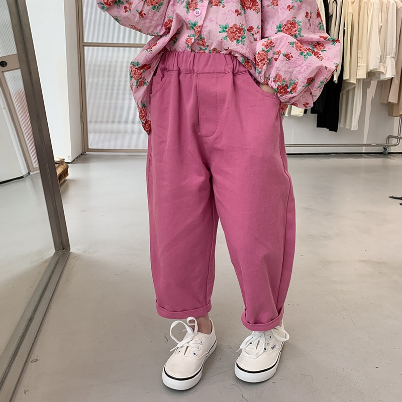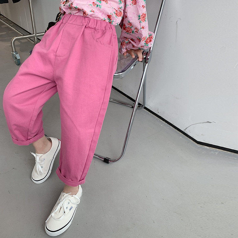 Amo Beibei Girls Baby Stylish Rose Color Casual Pants Spring Children's Pants Children's Straight Pantsy