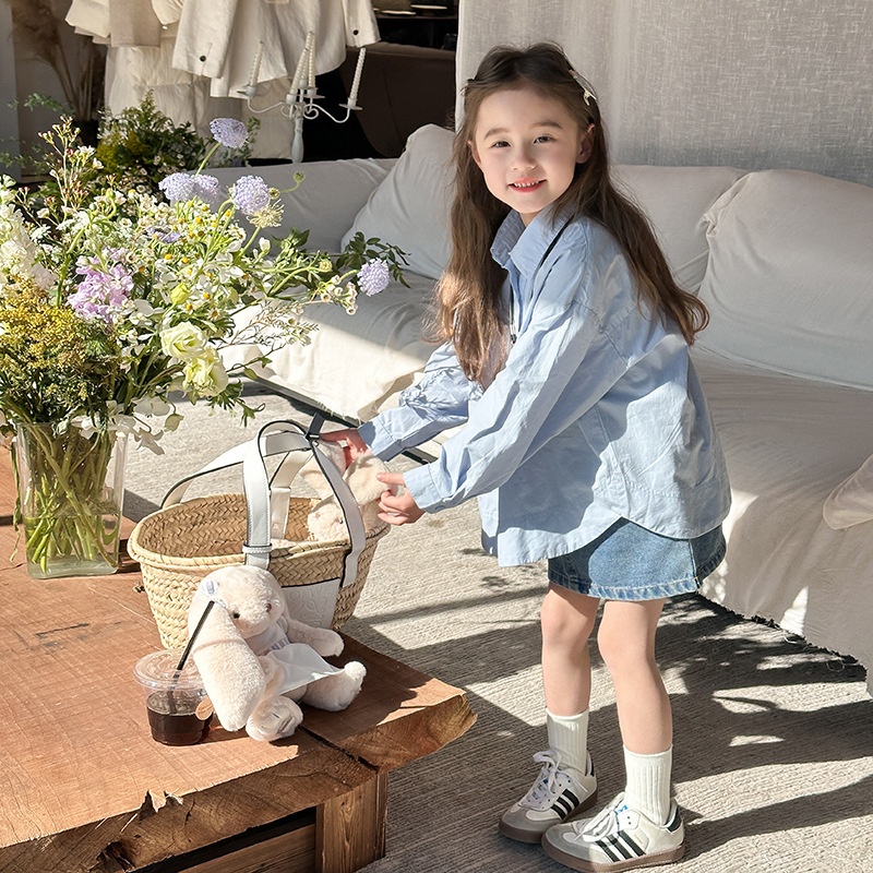 Amo Beibei Children's Clothing Spring Children's Stylish All-match Shirts For Boys And Girls Solid Color Lapel Shirt Jacket