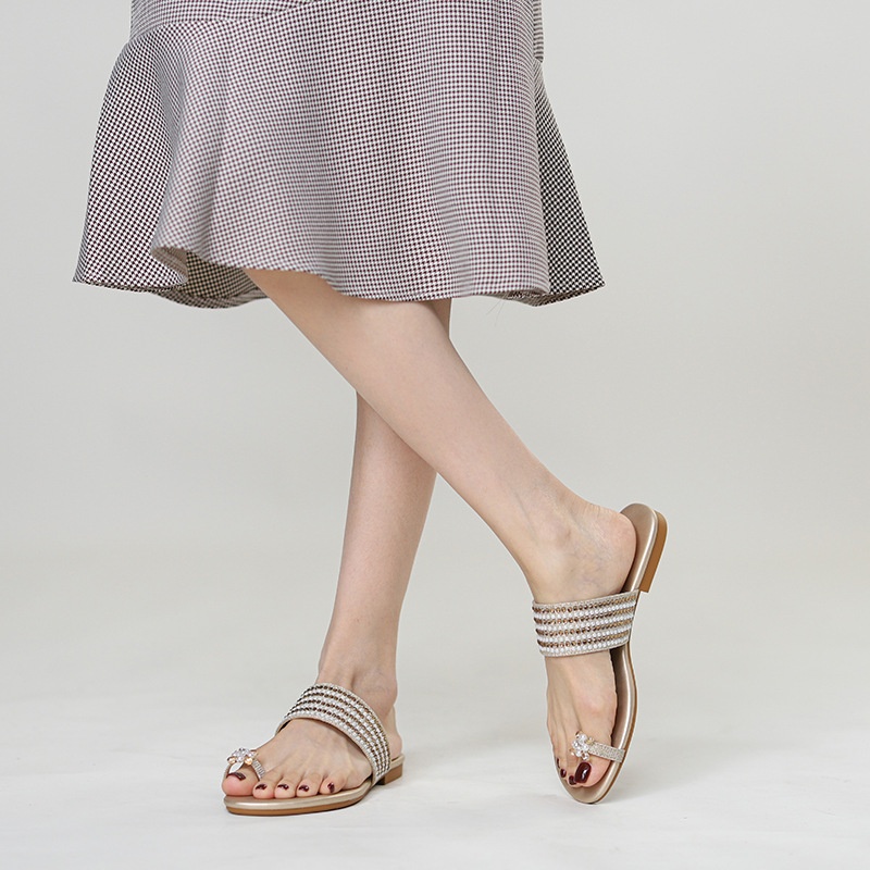 Seaside Roman Sandals For Women Summer Buckle Little Bee Clip Foot With Diamond Beach