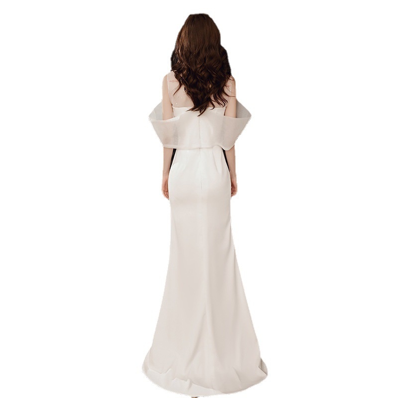 Summer French Evening Dress Fairy Banquet Temperament Lady White Fishtail Long Host Dress