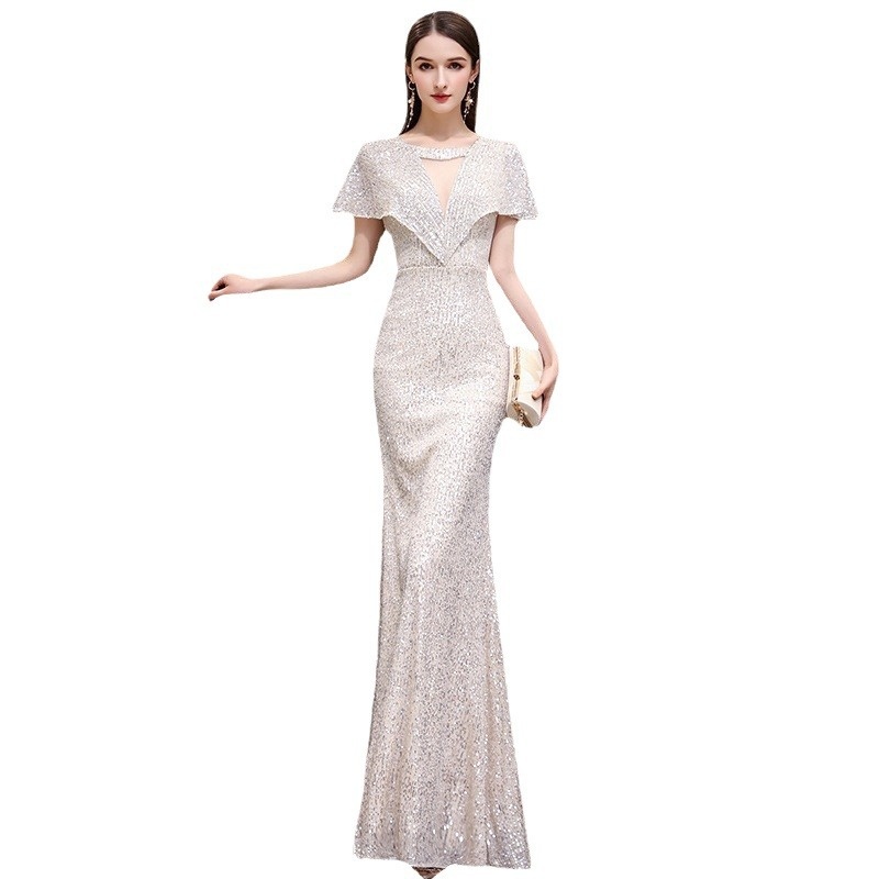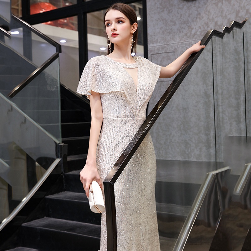 Silver Annual Meeting Evening Dress Female Summer Fishtail Banquet Temperament Host Aura Queen Dress