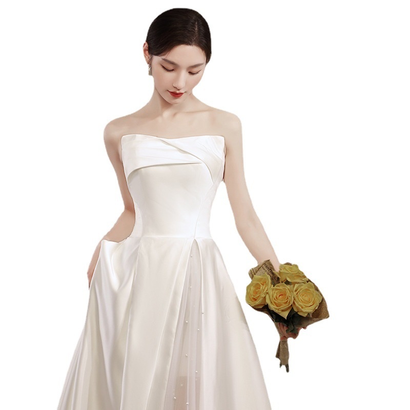Korean Simple Spring Light Wedding Dress Small Bride Tube Top Satin Welcome Out Of The Fishtail White Dress Female