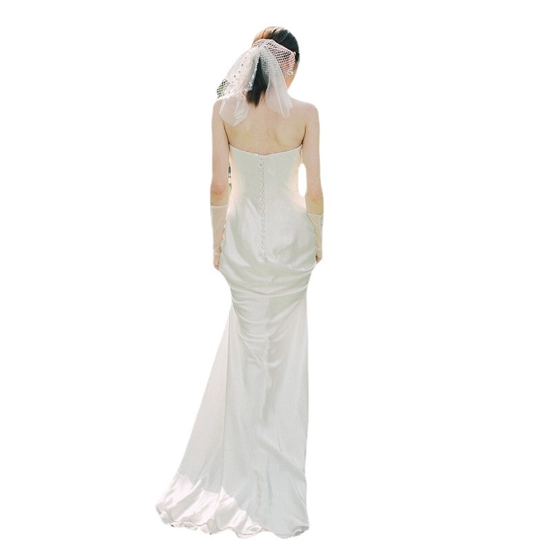 Korean Simple Spring Light Wedding Dress Small Bride Tube Top Satin Welcome Out Of The Fishtail White Dress Female