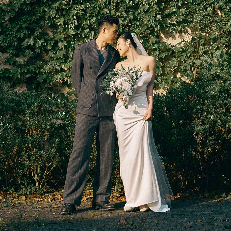 French Satin Travel Photography Light Wedding Dress Fishtail Bride Simple Waist Slimming One Shoulder Evening Dress Female