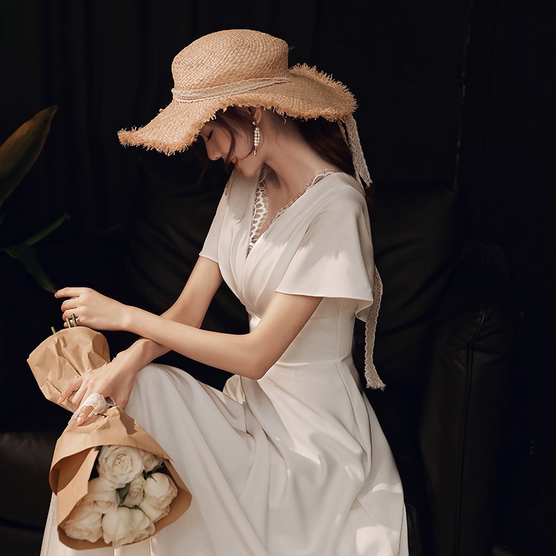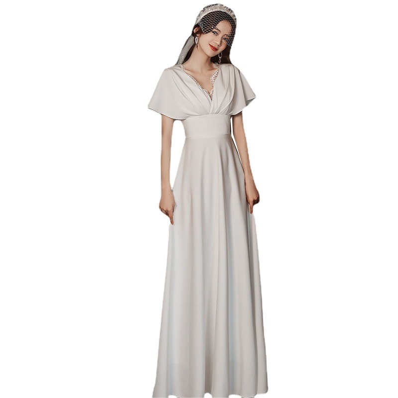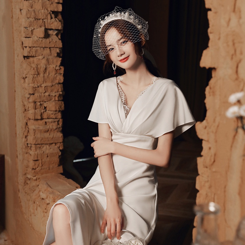 Light Wedding Evening Dress Female Summer White Simple French Satin Slim Dress Skirt Large Size Temperament