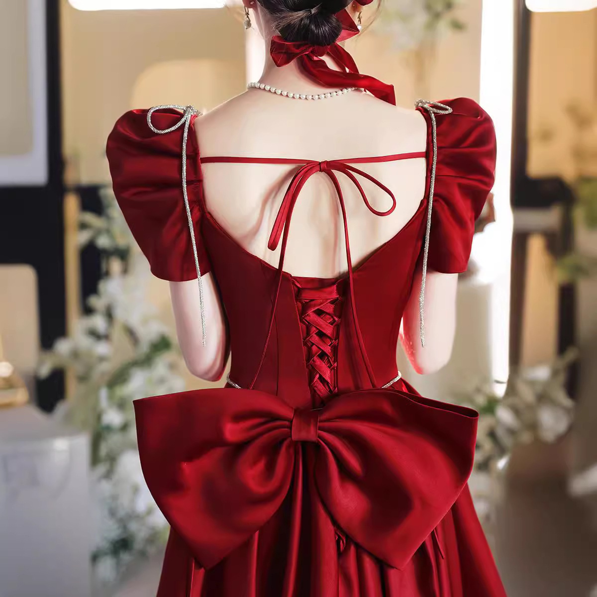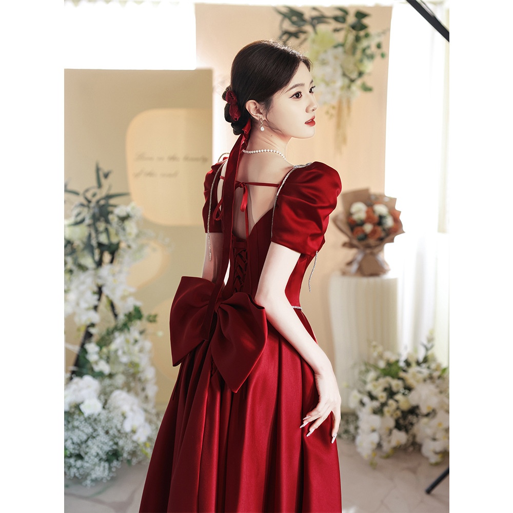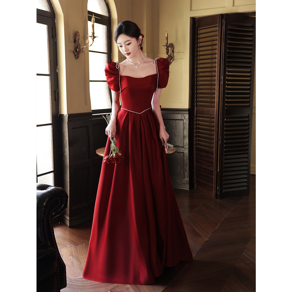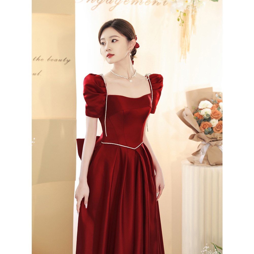Toast Dress Bride Spring Satin Simple Temperament Dress Thank You Banquet Puff Sleeve Wedding Toast Dress