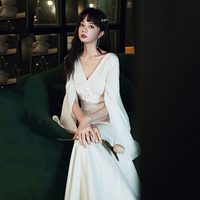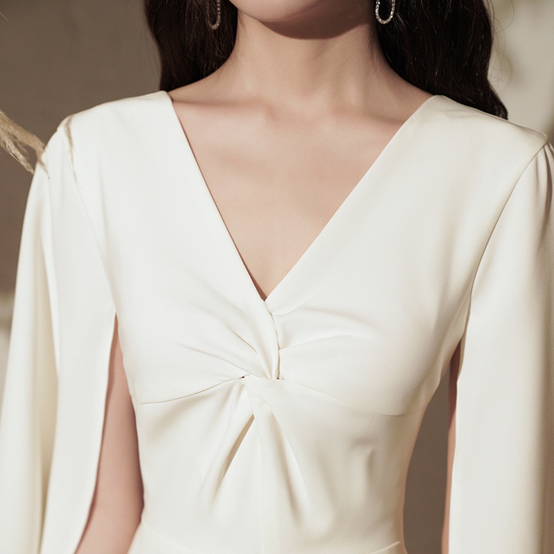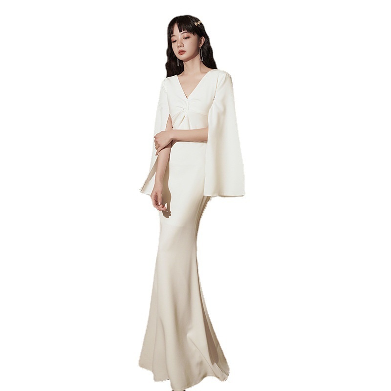 White Evening Dress Female Celebrity Banquet Temperament Long Sexy Slim Fishtail Host Dress