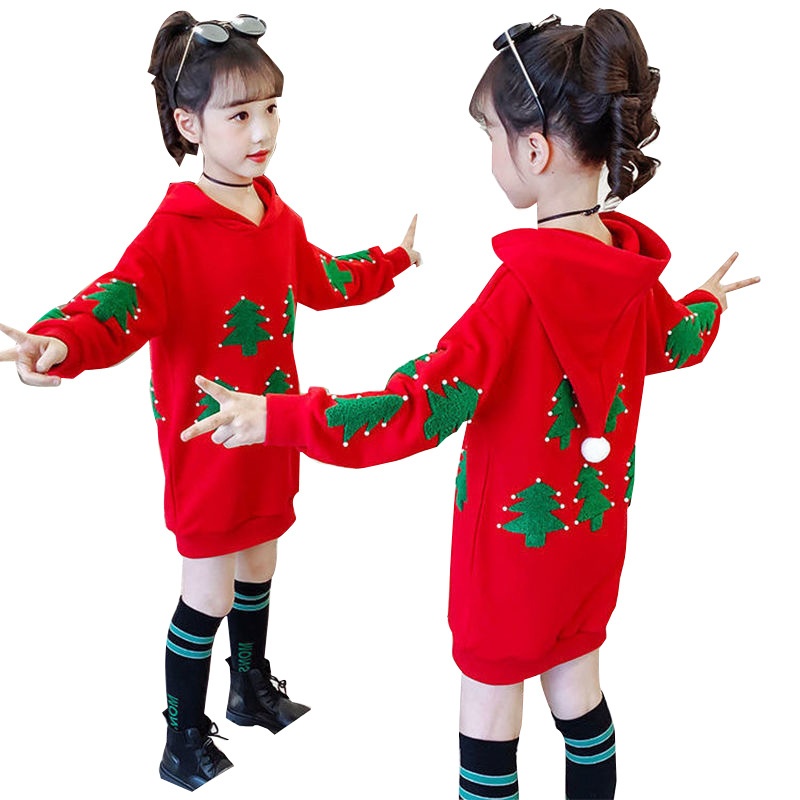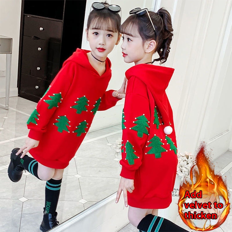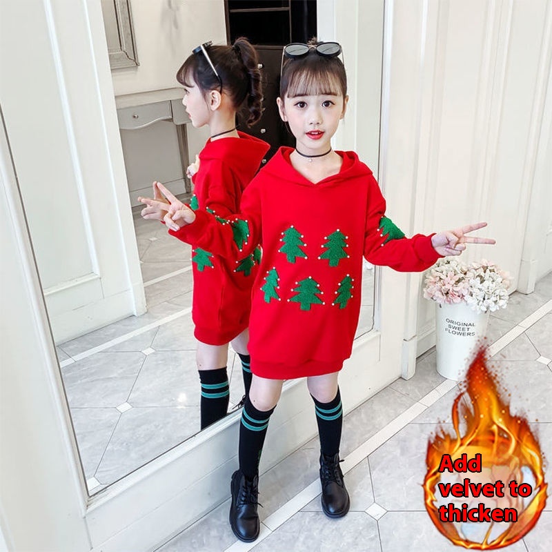 Girls Autumn And Winter Plus Velvet Sweater Winter Korean Version Of The Of Big Children And Little Girls Internet Celebrity Stylish Long Tops
