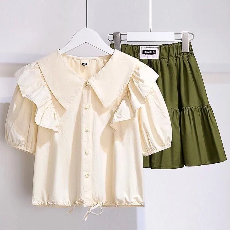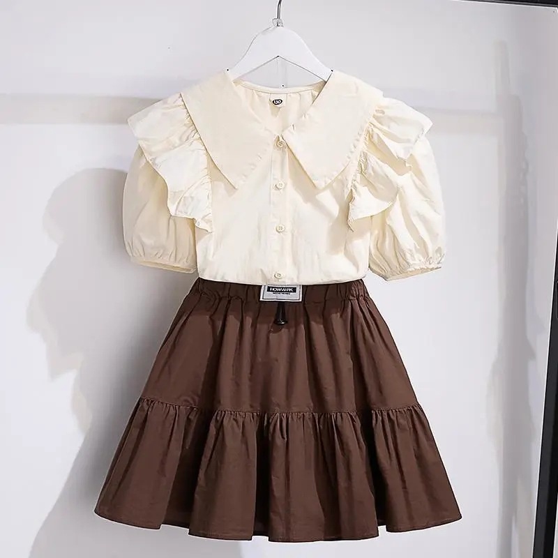 Girls Summer College Style Suit Style Children's Summer Net Celebrity Skirt Girl Fashionable Two-piece Suit