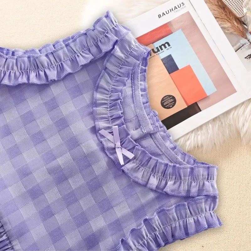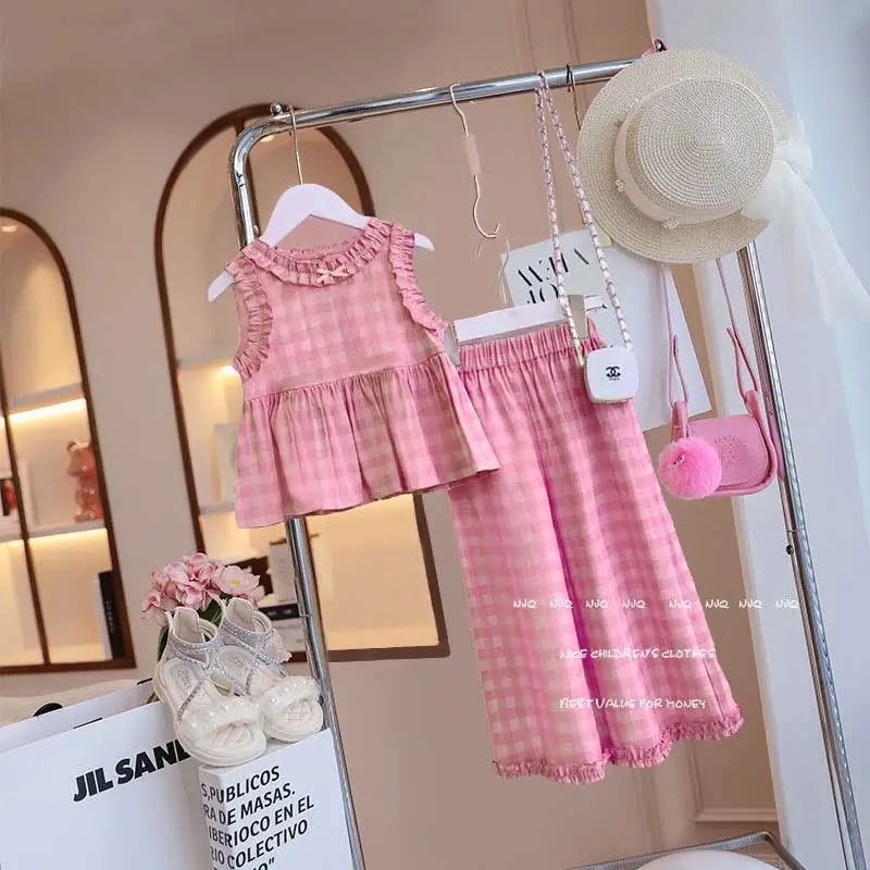 Girls Suit Summer Korean Version Children's Little Girl Sleeveless Top Wide-leg Pants Plaid Two-piece Suity
