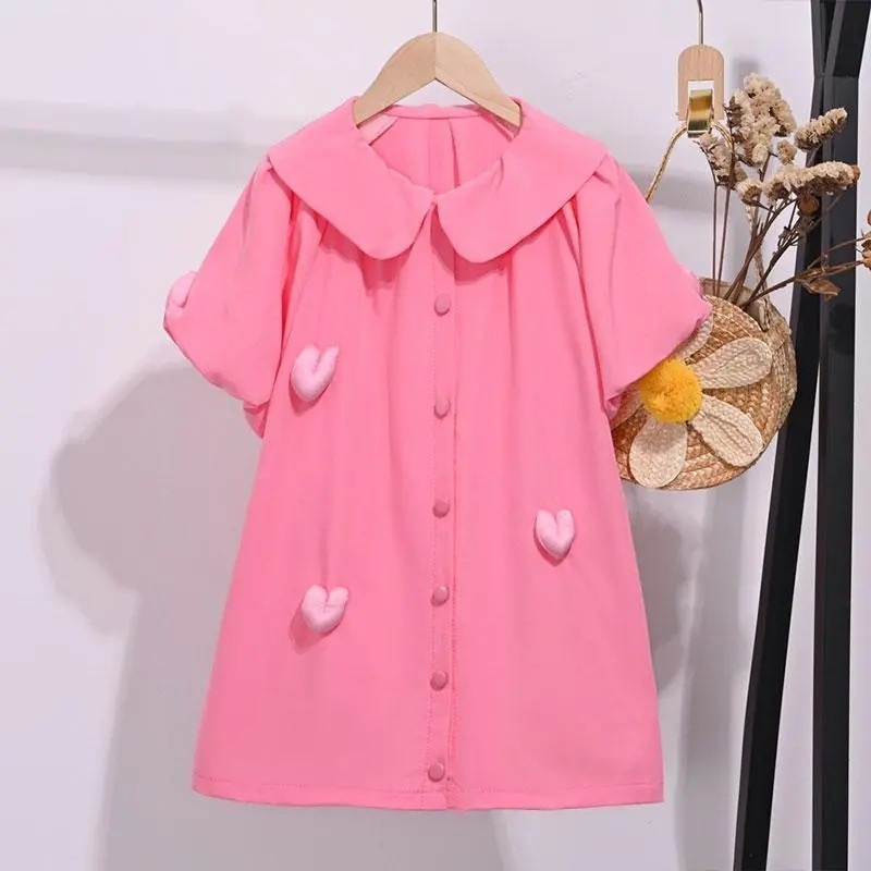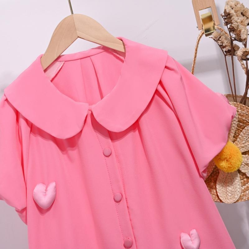 Girls Shirt Dress Summer Fashion Style Forest Doll Collar Love Short Sleeve Puff Sleeve Skirt