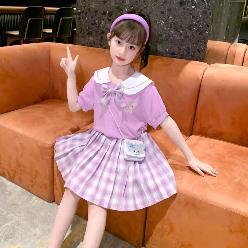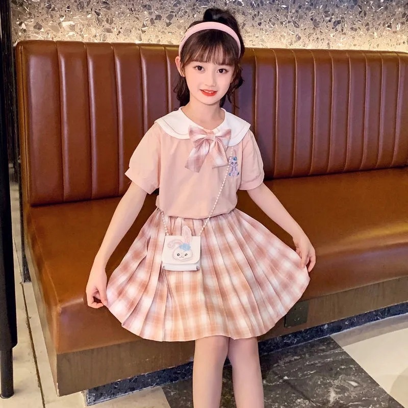 Children's JKSkirt Summer Clothes For Girls Western Style Internet Celebrity Korean Version Of The Fashion College Style Summer Princess Pleated Skirt Suit Female
