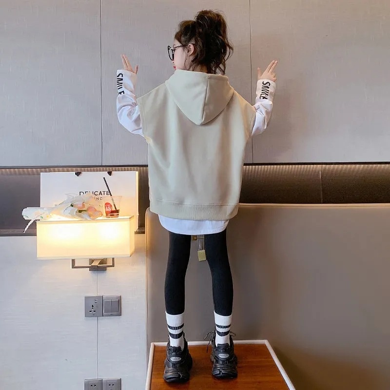 Girls Autumn Tops Girls Stylish Children's Autumn Clothes Spring And Autumn Vest Sweatshirt Big Children's Casual Suit