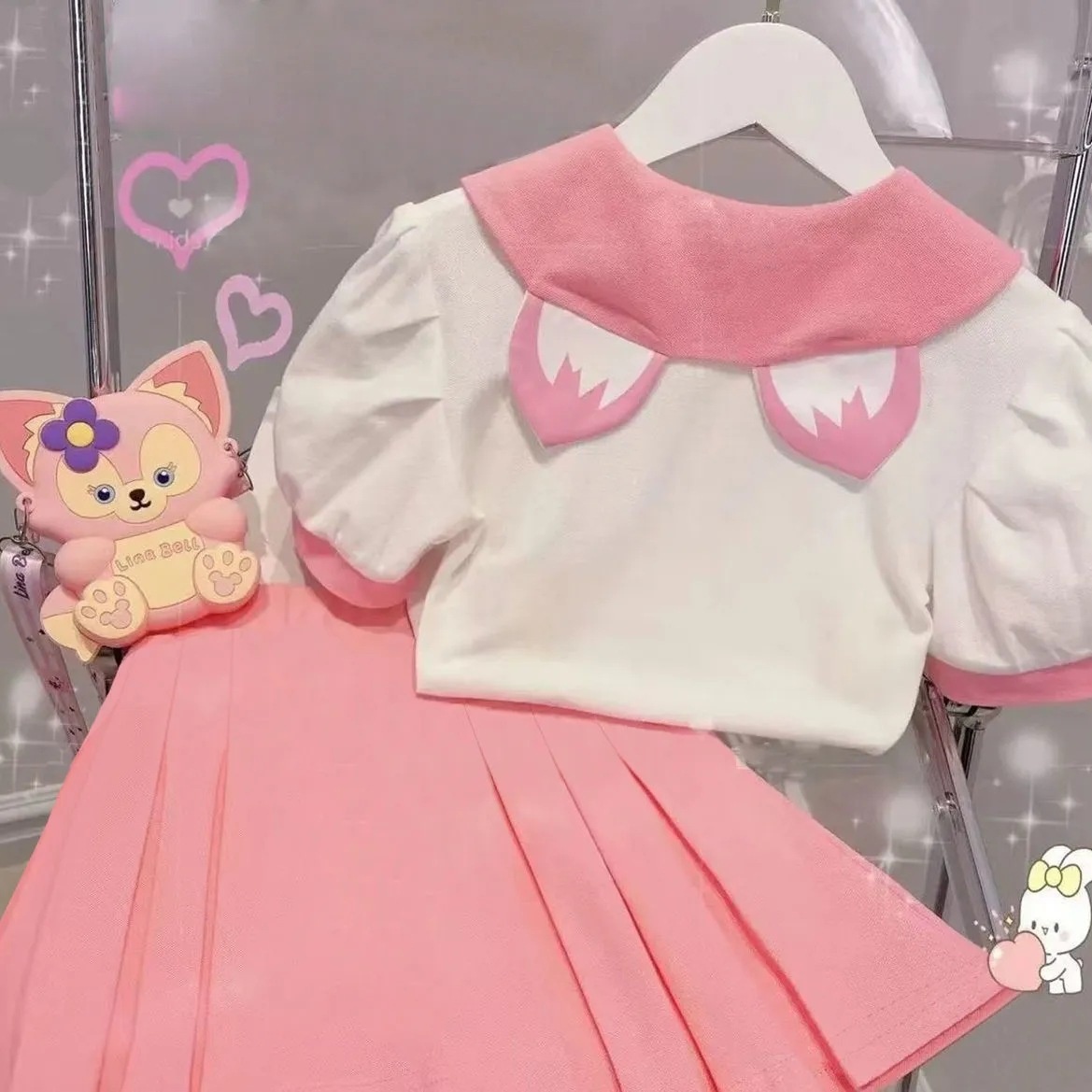 Girls Summer Suits Summer Clothes For Medium And Large Children Short-sleeved Tops For Baby Girls Skirts Two-piece Suitsy