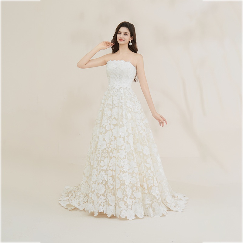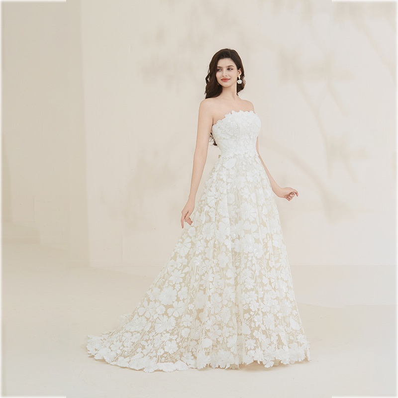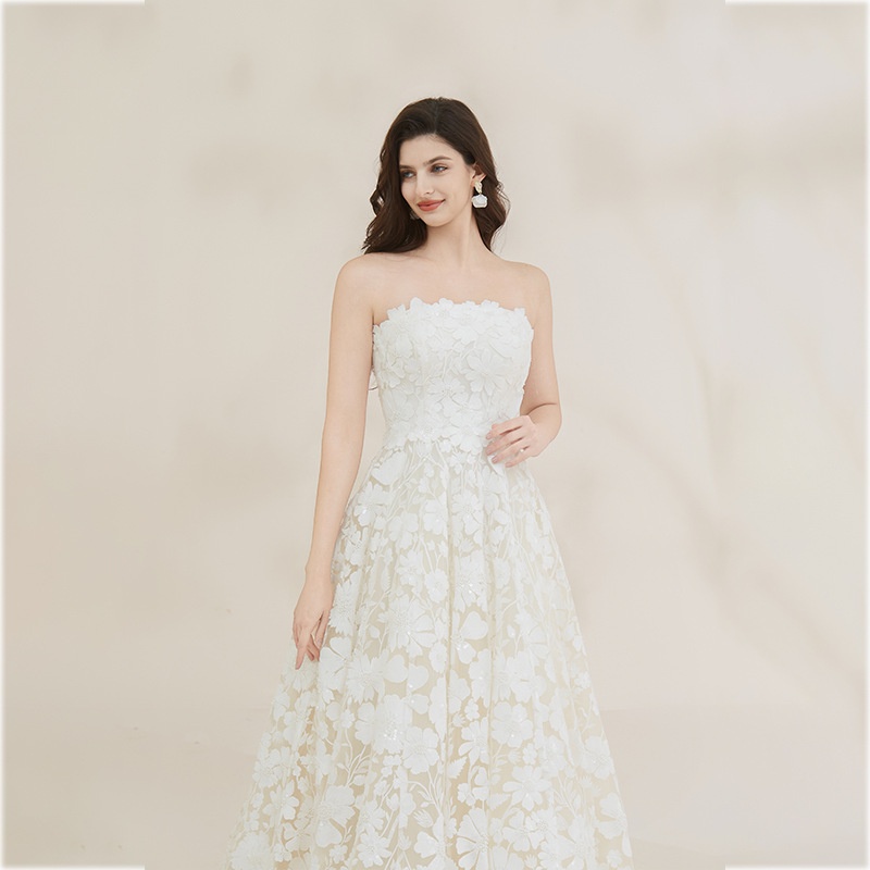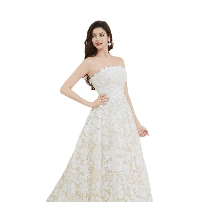 Halter Neck Satin Haute Couture Long Dress For Women Waisted Tube Top Fishtail Wedding Dress