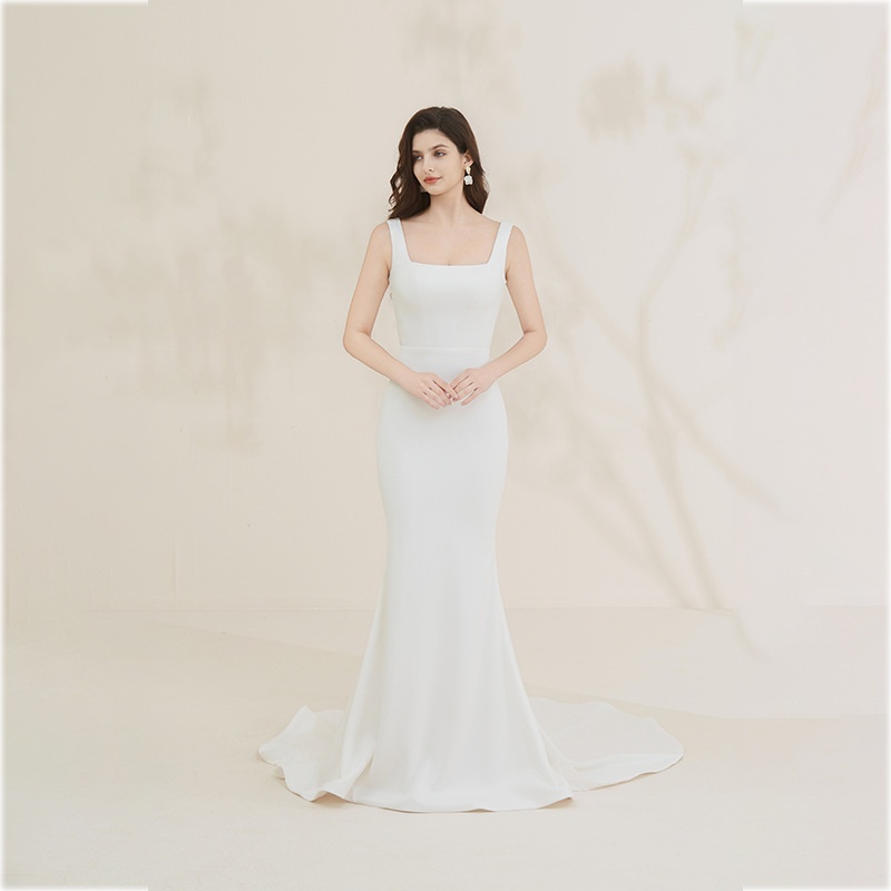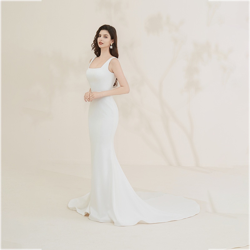 Sling Satin Haute Couture Dress Long Dress Waist Train Fishtail Light Wedding Dress