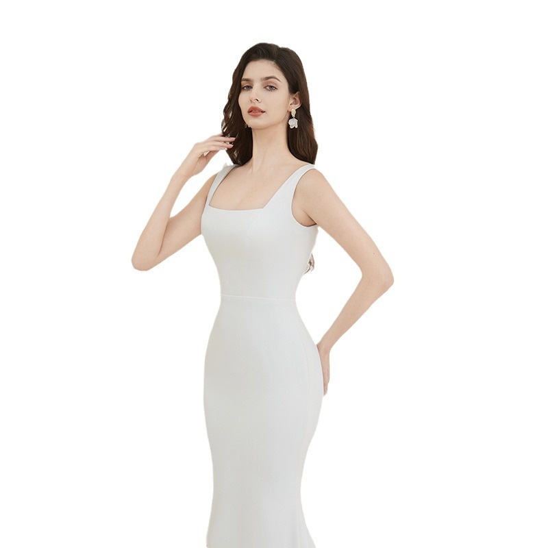 Summer French Evening Dress Fairy Banquet Temperament Lady White Fishtail Long Host Dress