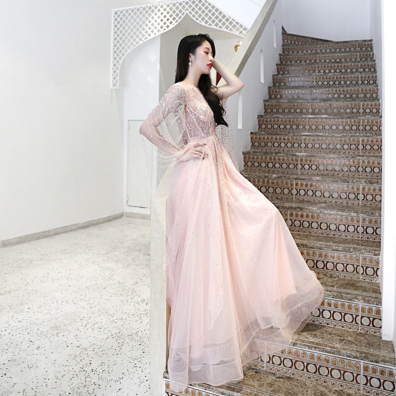 Style Evening Dress Long Women European And American Fashion Hotel Wedding Host Banquet Wedding Evening Dress