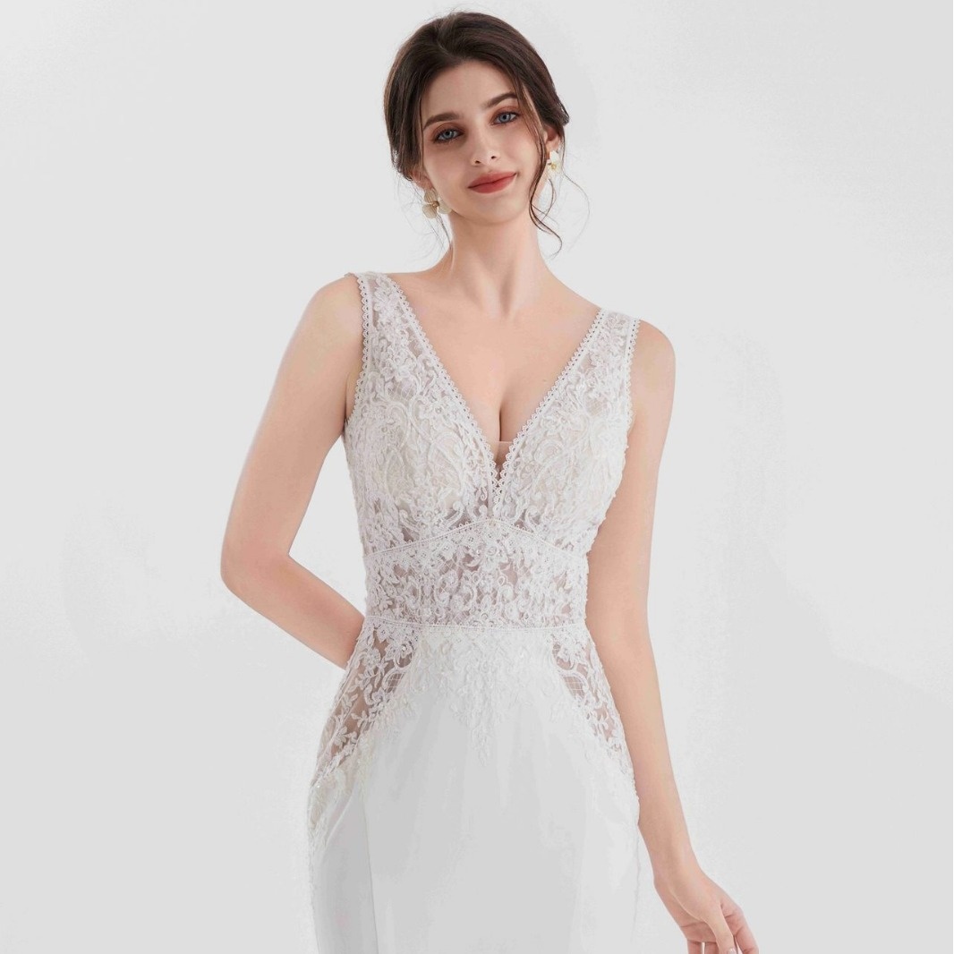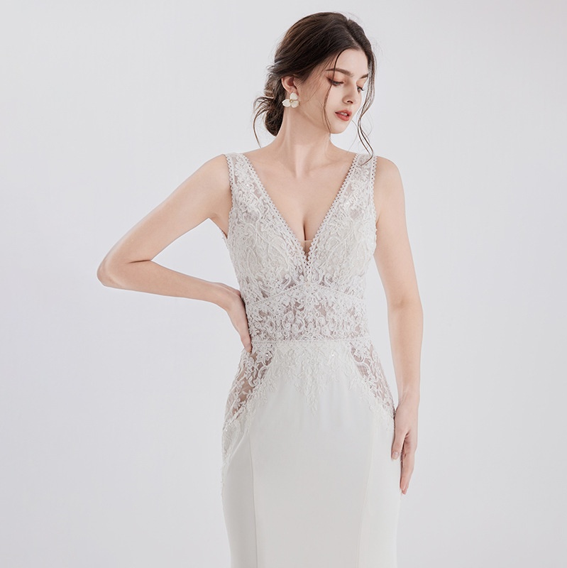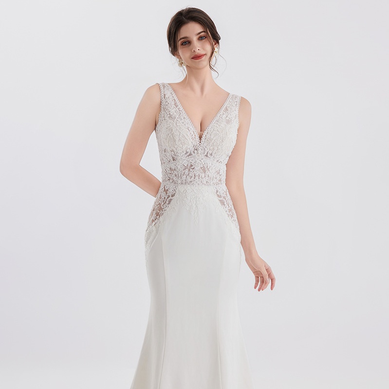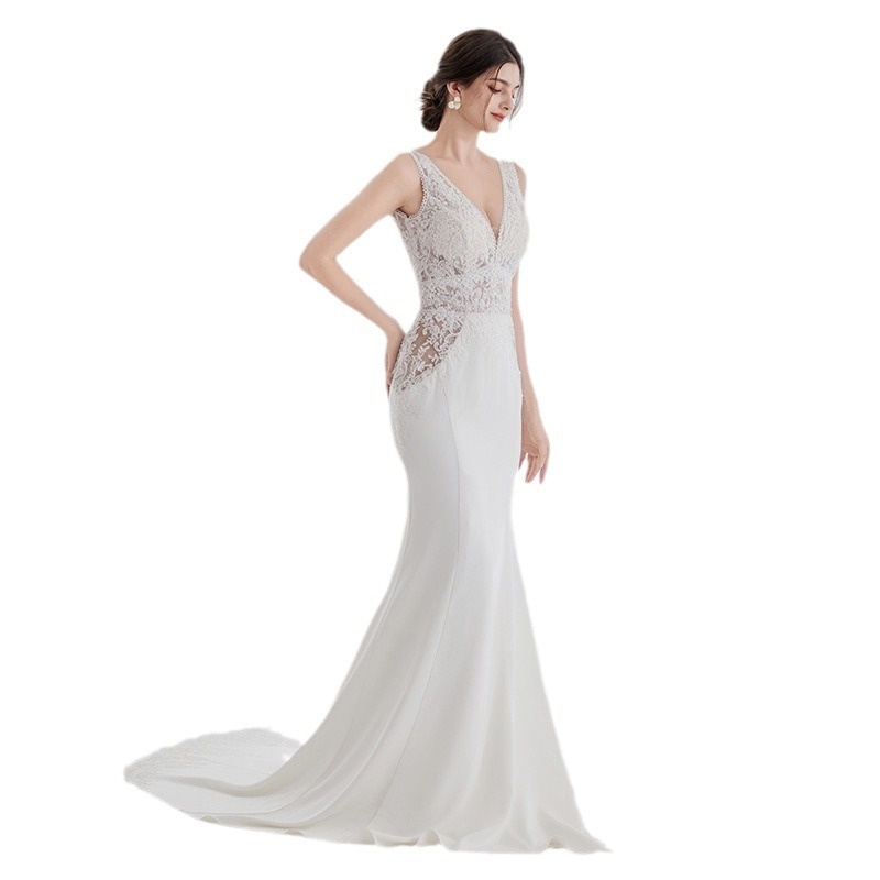 European And American Women's Clothing High-end Solid Color Long Dress Deep VWedding Dress