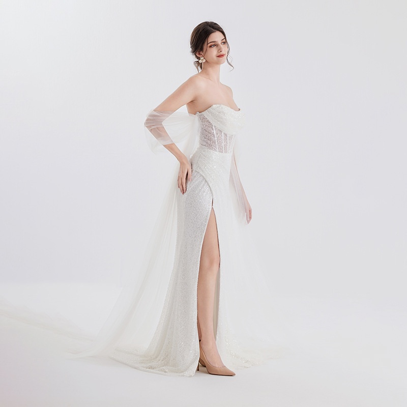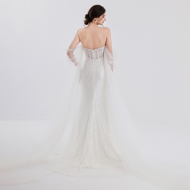 Women's Dress Tube Top See-through Lace Bride Light Wedding Dress