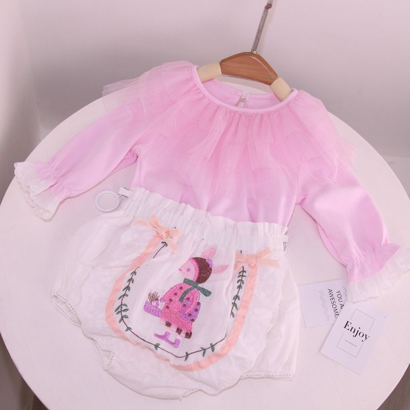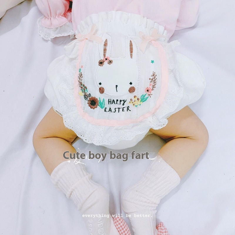 Summer Cotton Lining Baby Girl Fart Pants Diaper Quitting Training Pants Cartoon Baby Princess Style Bread Pants