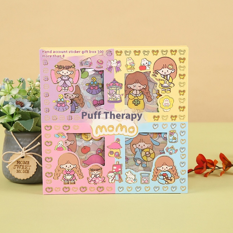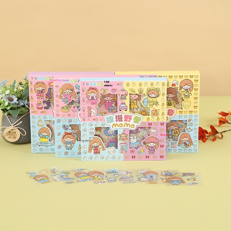 Children's Full Set Of100 Cute Handbook Stickers Decorative Gift Box Diy Cartoon PETMaterial Stickers Set Girly Heart