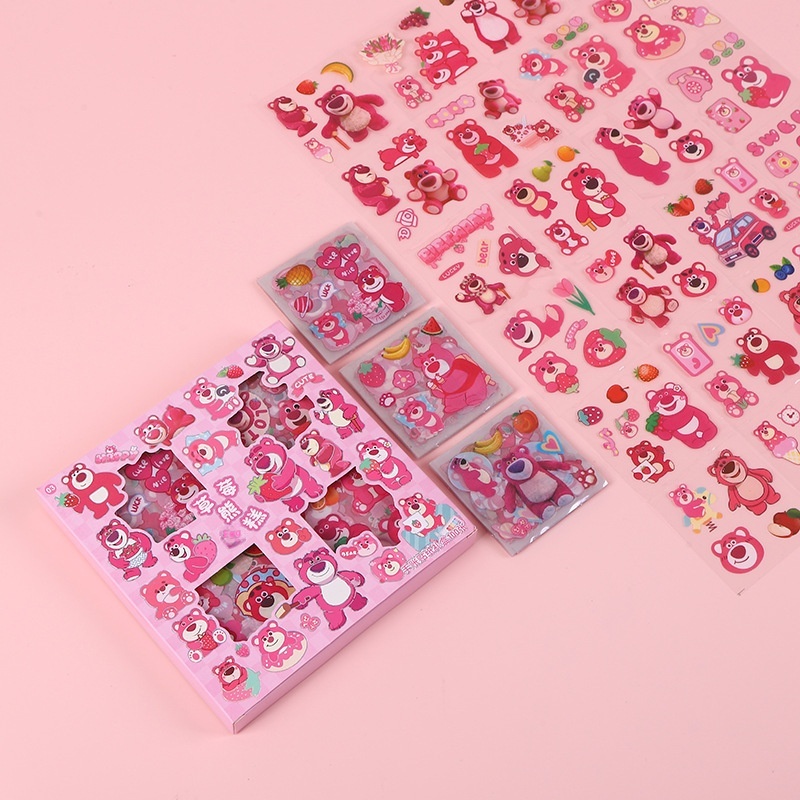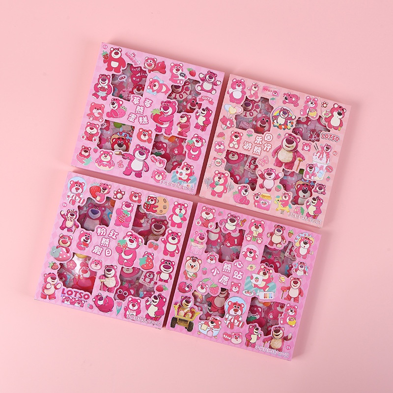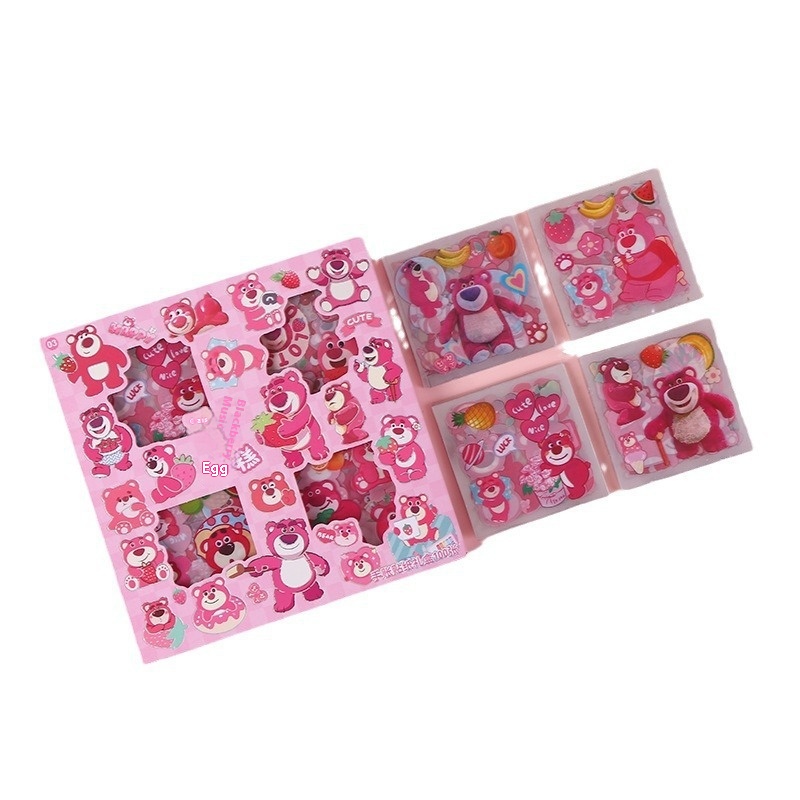 100 Cute Cartoon Strawberry Bear Stickers Box Waterproof Pet Stickers Creative Handbook Stickers Material Set Batch