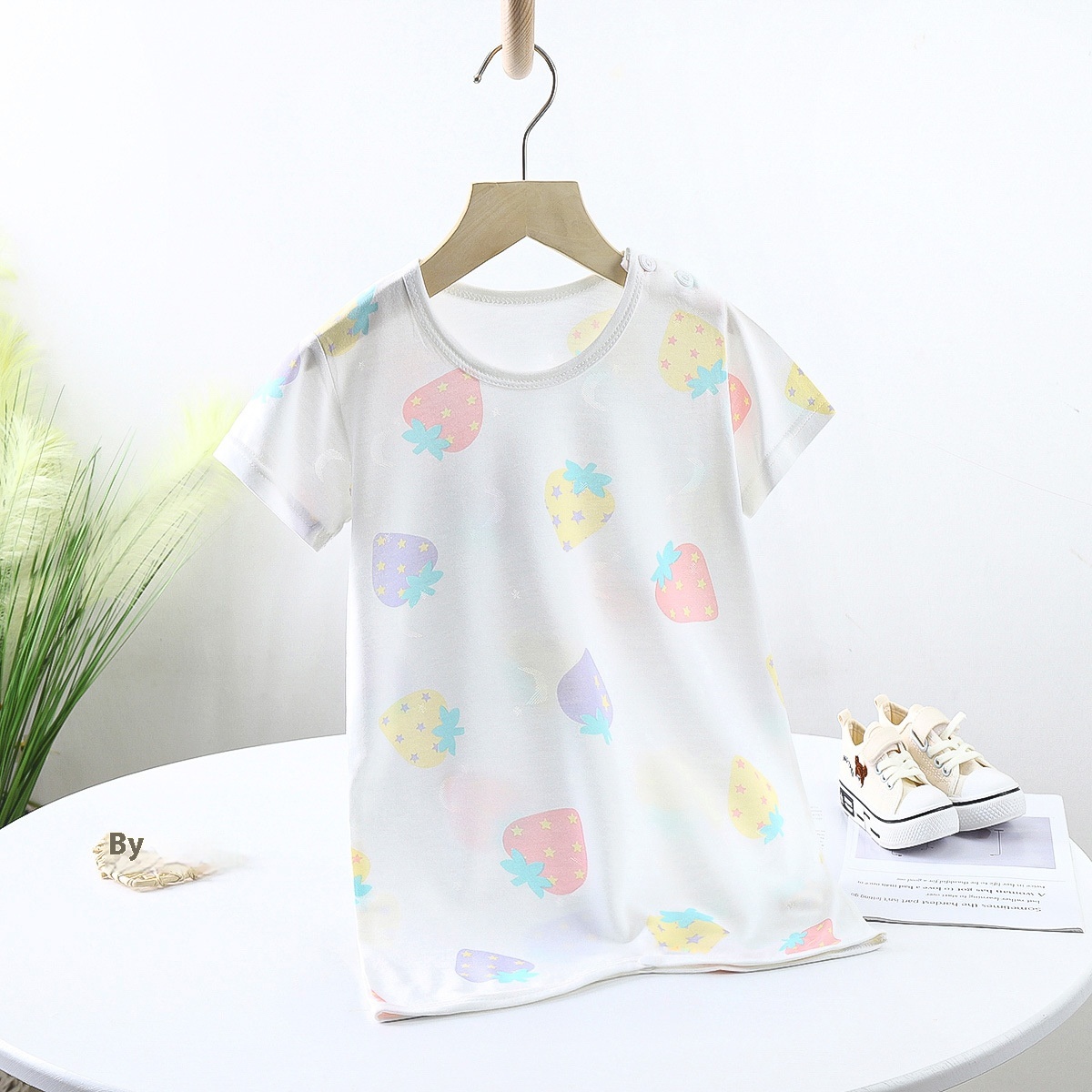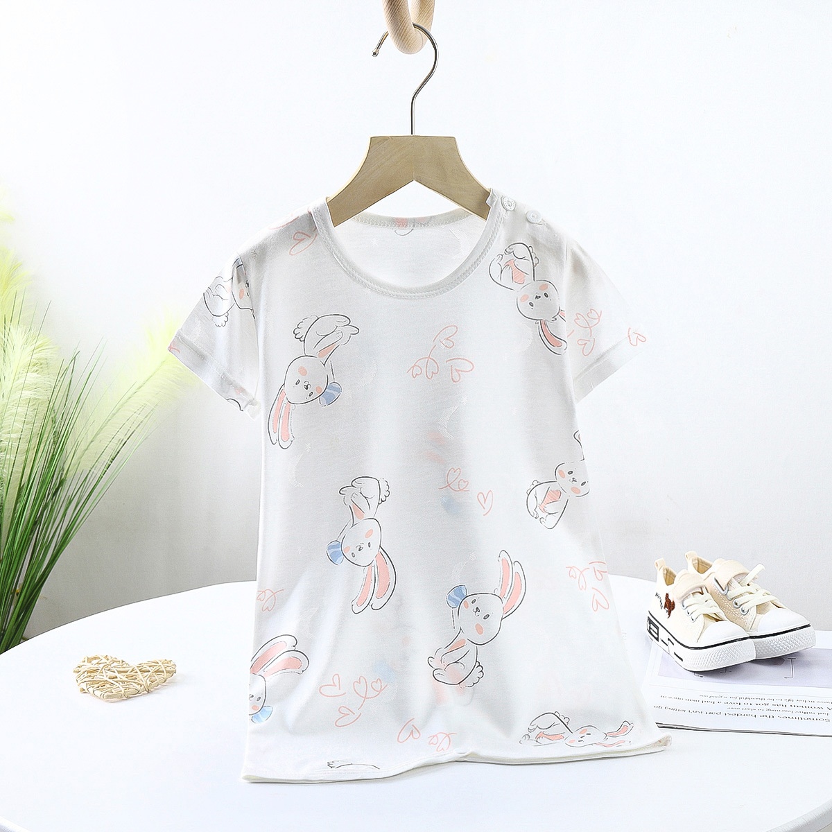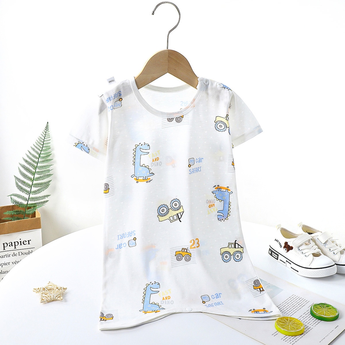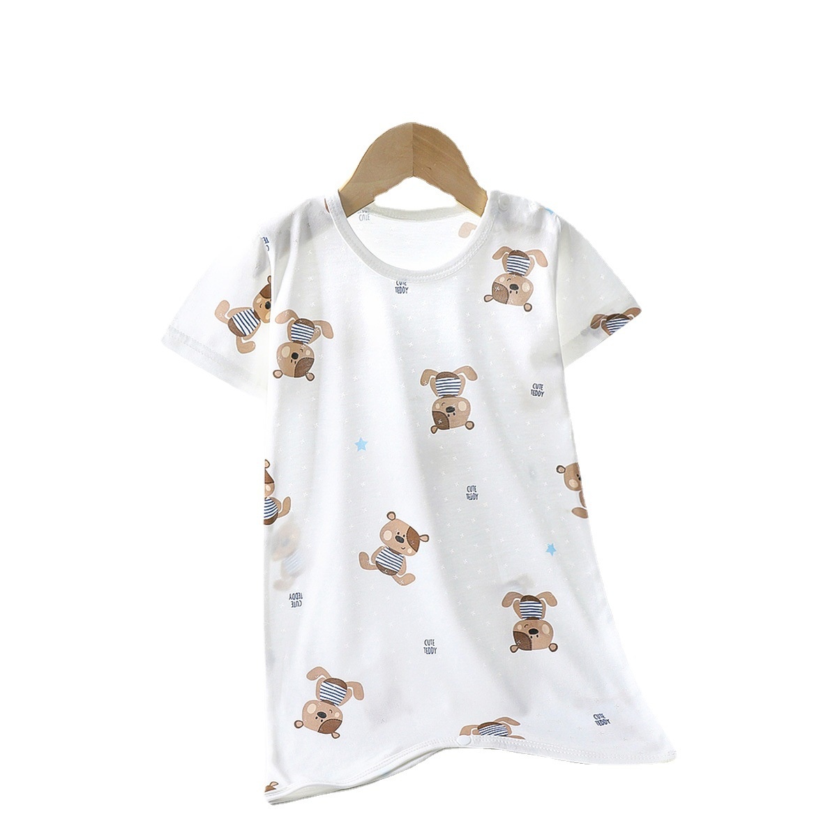 Children's Summer Short-sleeved Nightgown Thin Infant Bamboo Fiber Home Clothes Jumpsuit Male And Female Baby Long Sleeping Bag