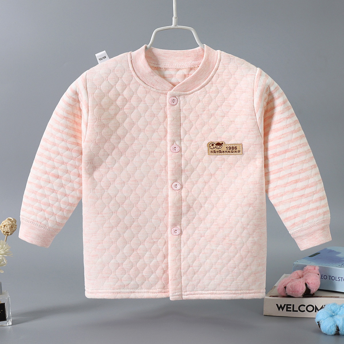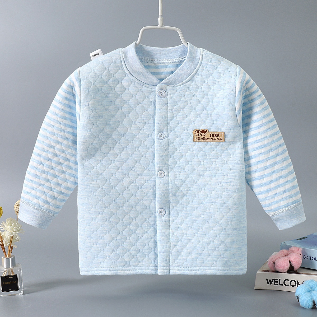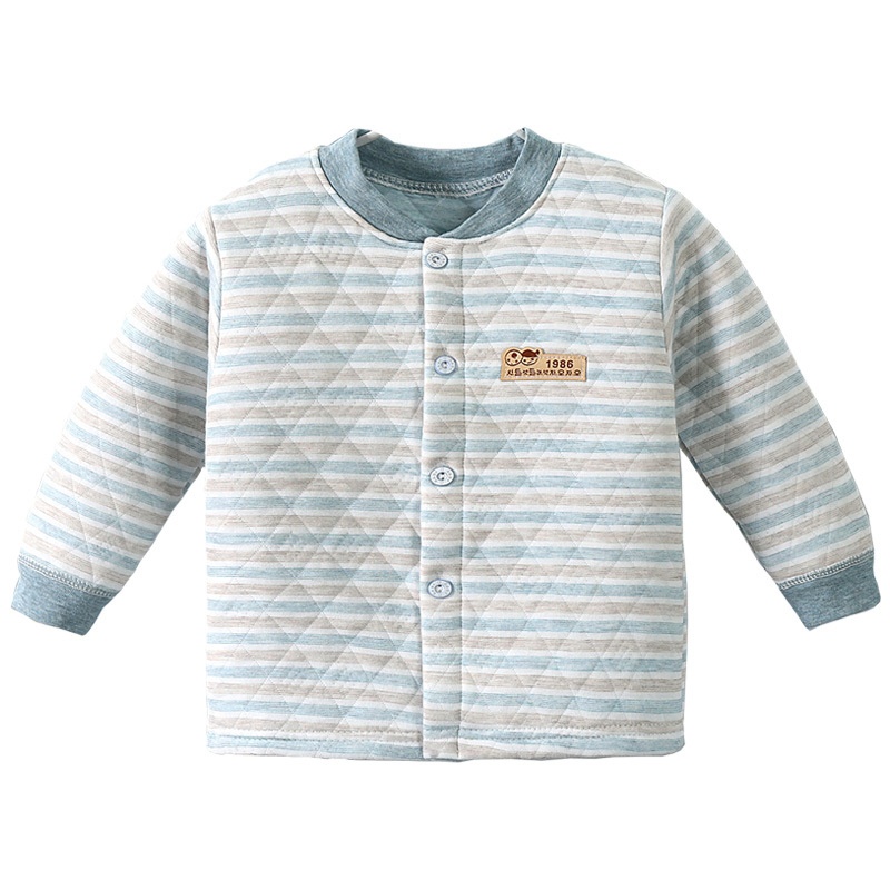 Autumn And Winter Baby Three-layer Warm Top Cardigan Style Quilted Single Piece Autumn Clothing Middle And Large Children's Thickened Cotton Pajamas