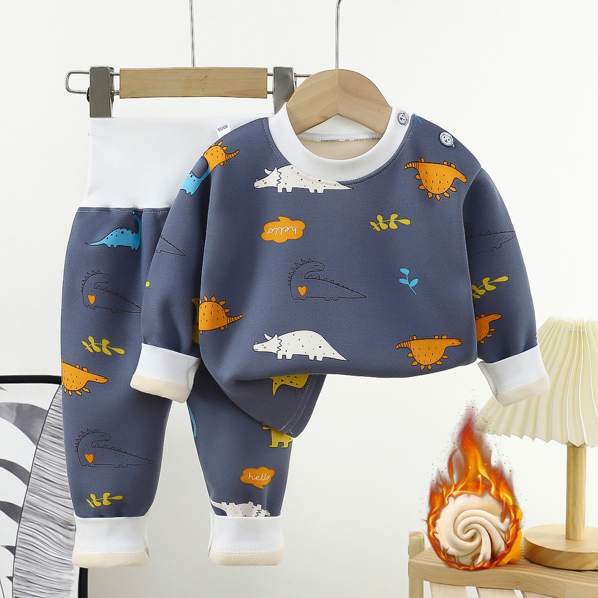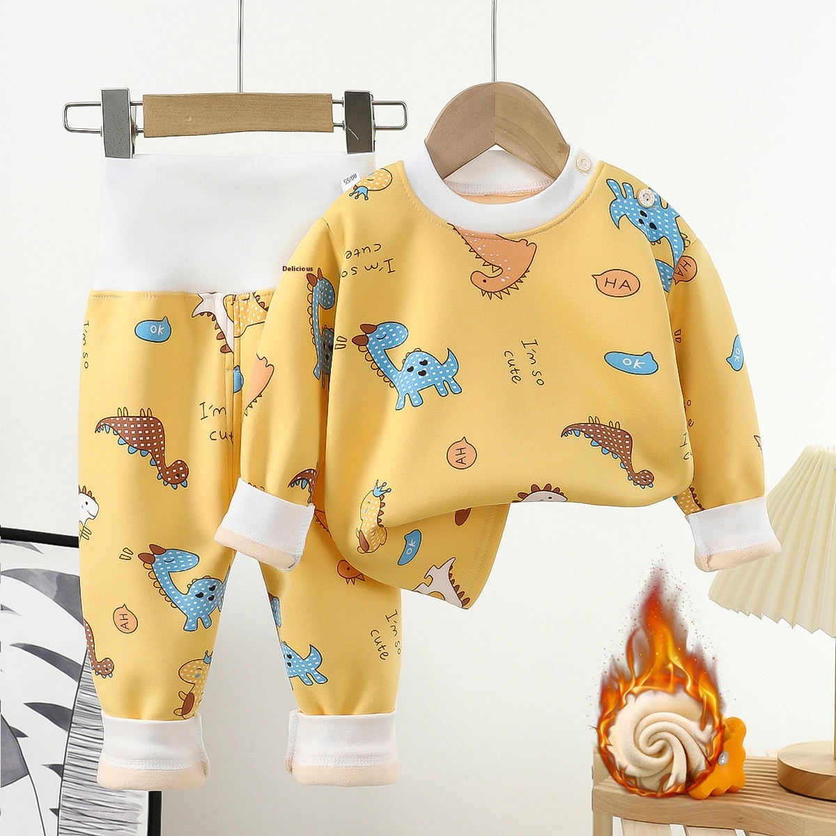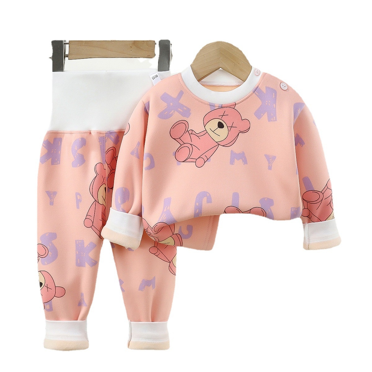 Children's Plush Warm Suit Infant Thick High Waist Pants Underwear Boys And Girls Baby Milk Silk Autumn And Winter Pajamas