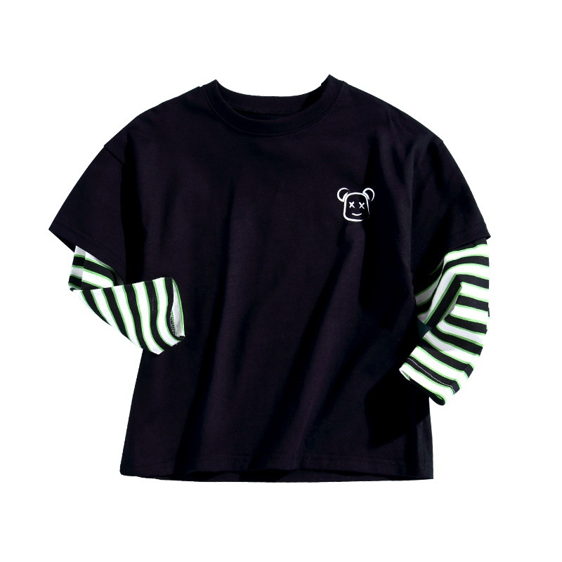 Spring And Summer Children's Long-sleeved T-shirt Boys'National Pure Cotton Fake Two-piece Baby Girls Printed Bottoming Shirt Inner Wear