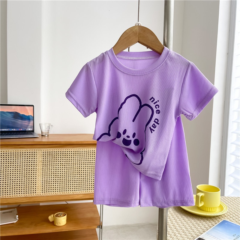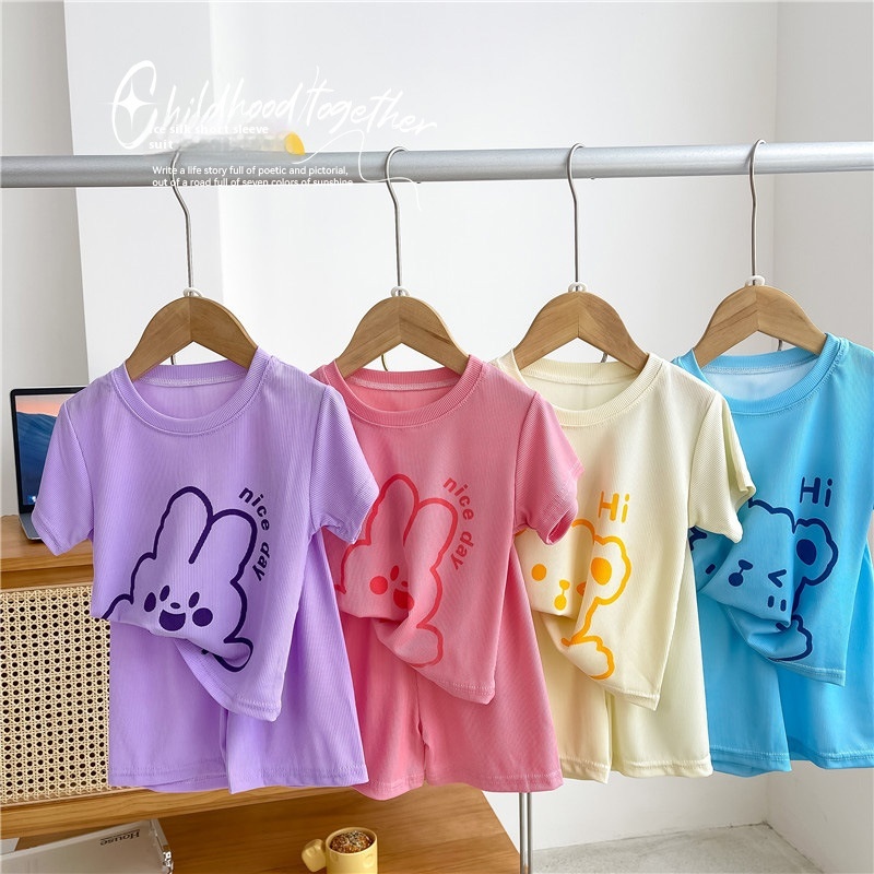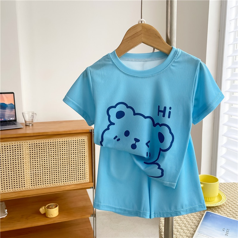 Children's Summer Home Clothes Suit Boy Cartoon Bear Air-conditioning Clothes Girl Baby Casual Short-sleeved Pajamas