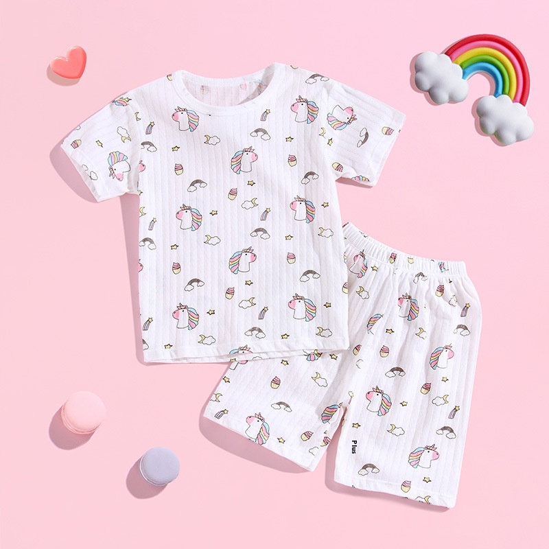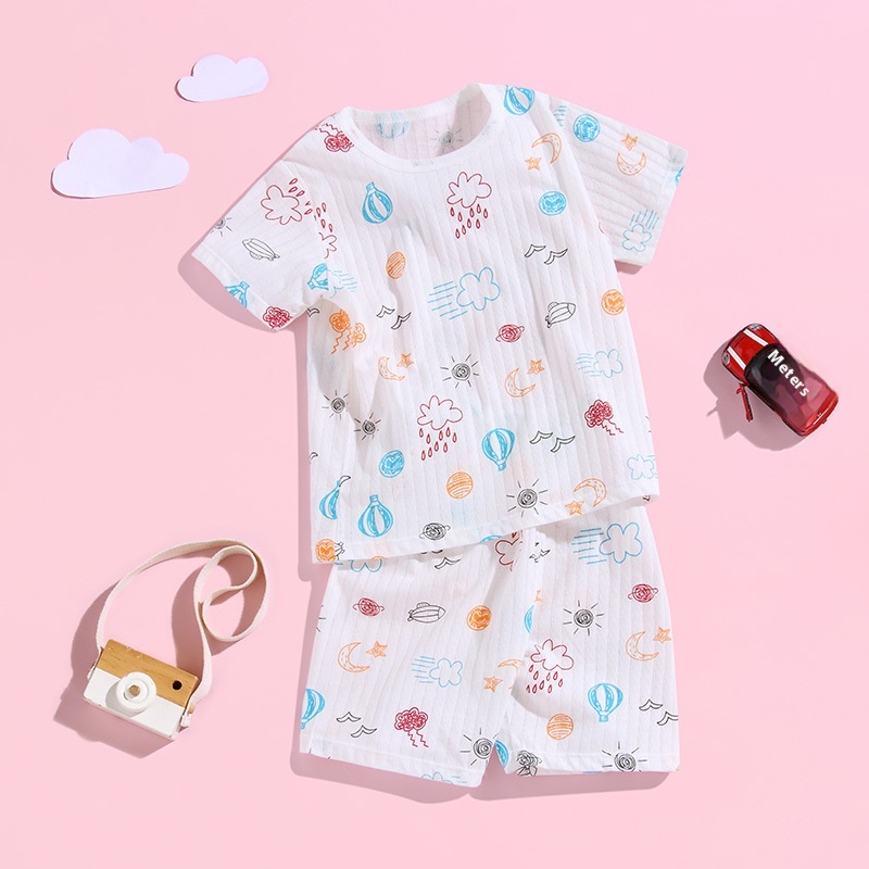 Children's Short-sleeved T-shirt Suit Pure Cotton Baby Summer Children's Clothing Home Clothes Boys And Girls Short-sleeved Shorts Air-conditioning Pajamas