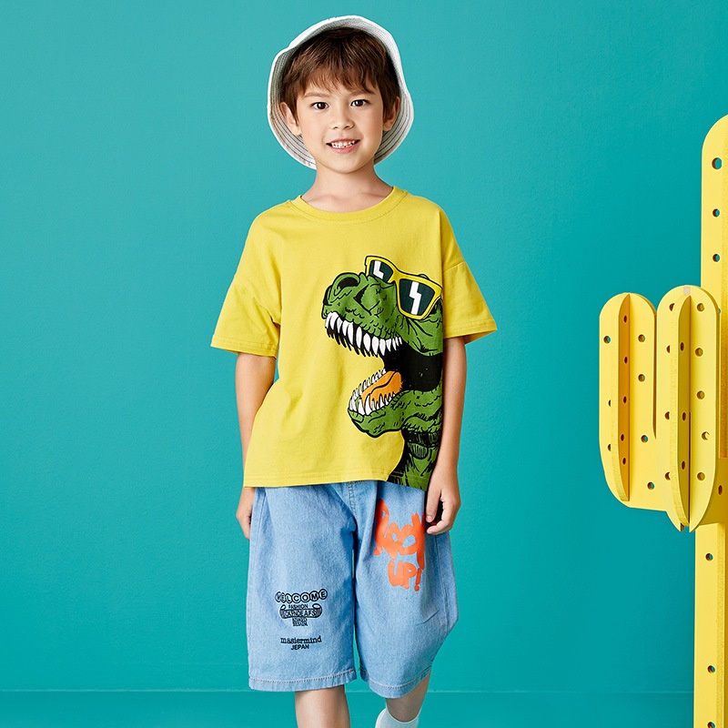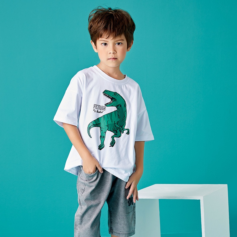 22 Spring And Summer Children's Short-sleeved T-shirt Boys'National Printed Half-sleeved Cotton Bottoming Shirt For Middle And Large Children