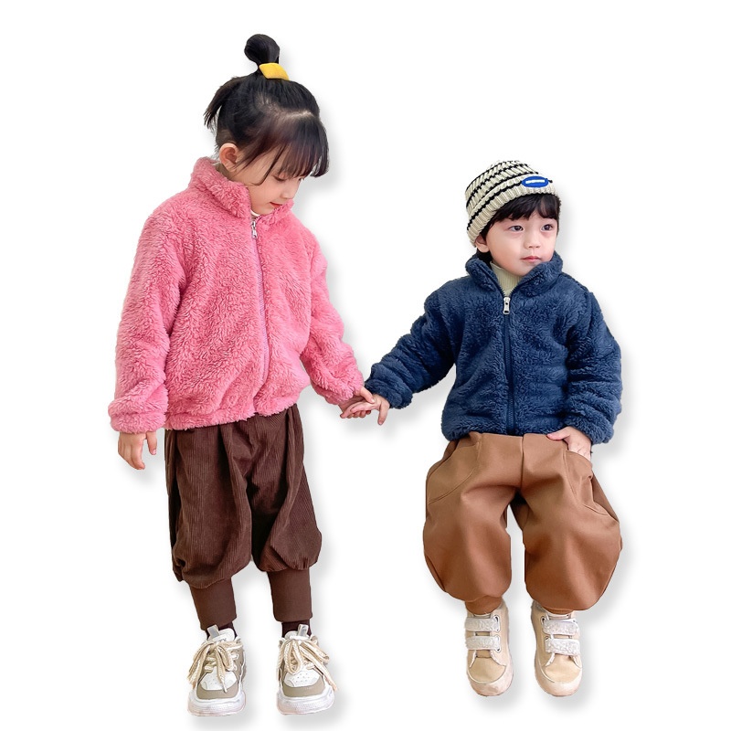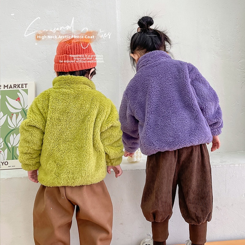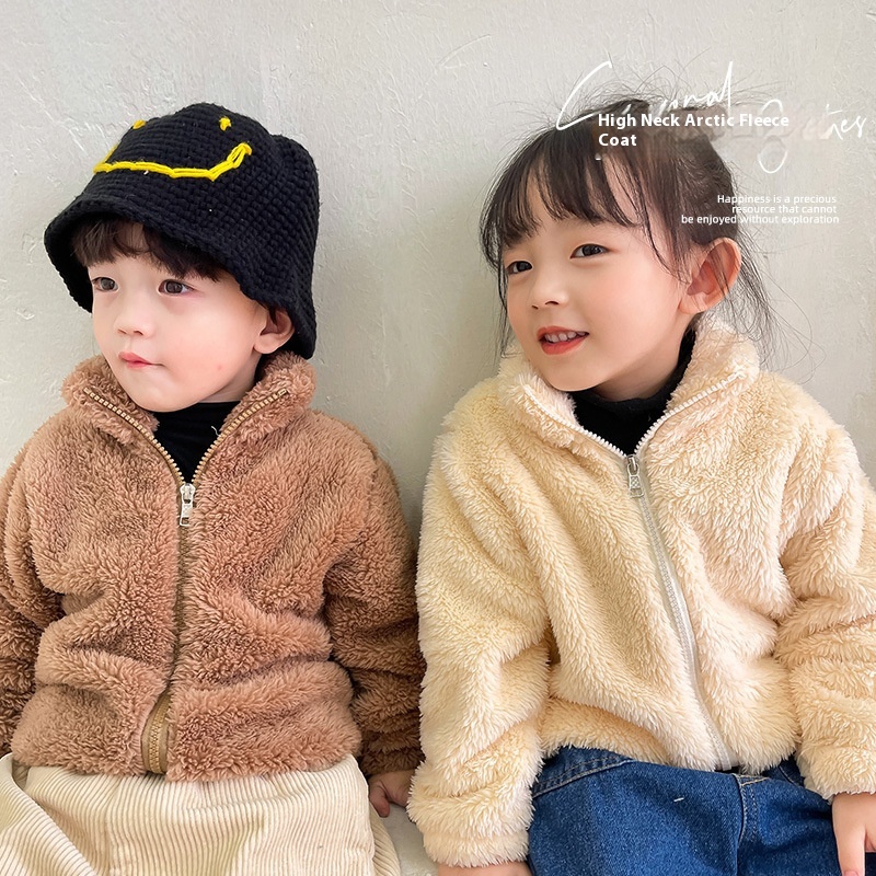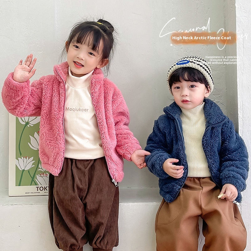 Children's Autumn And Winter Stand-up Collar Plush Coat For Girls,Plush Warm Cotton-padded Coat For Boys,Thick And Comfortable Cotton-padded Jacket Tops